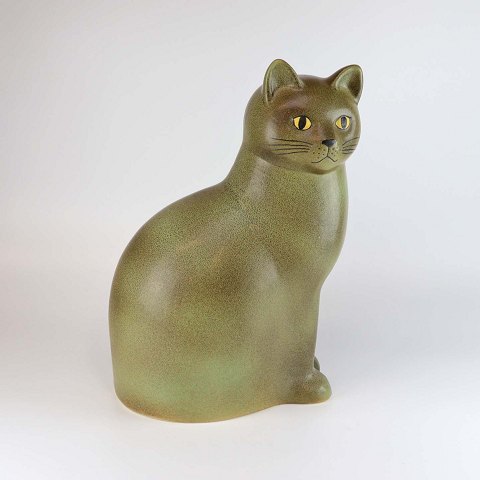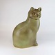Keramik kat af grønmeleret stentøj fra serien Murre. Størrelsen maxi