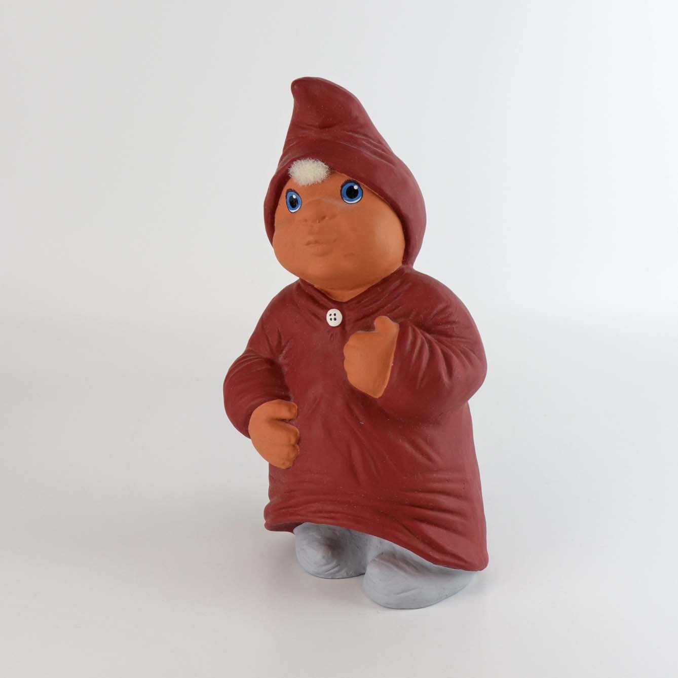Klarborg figur af nissepigen Gine, som er iført rød nissehue og en lang rød natkjole.