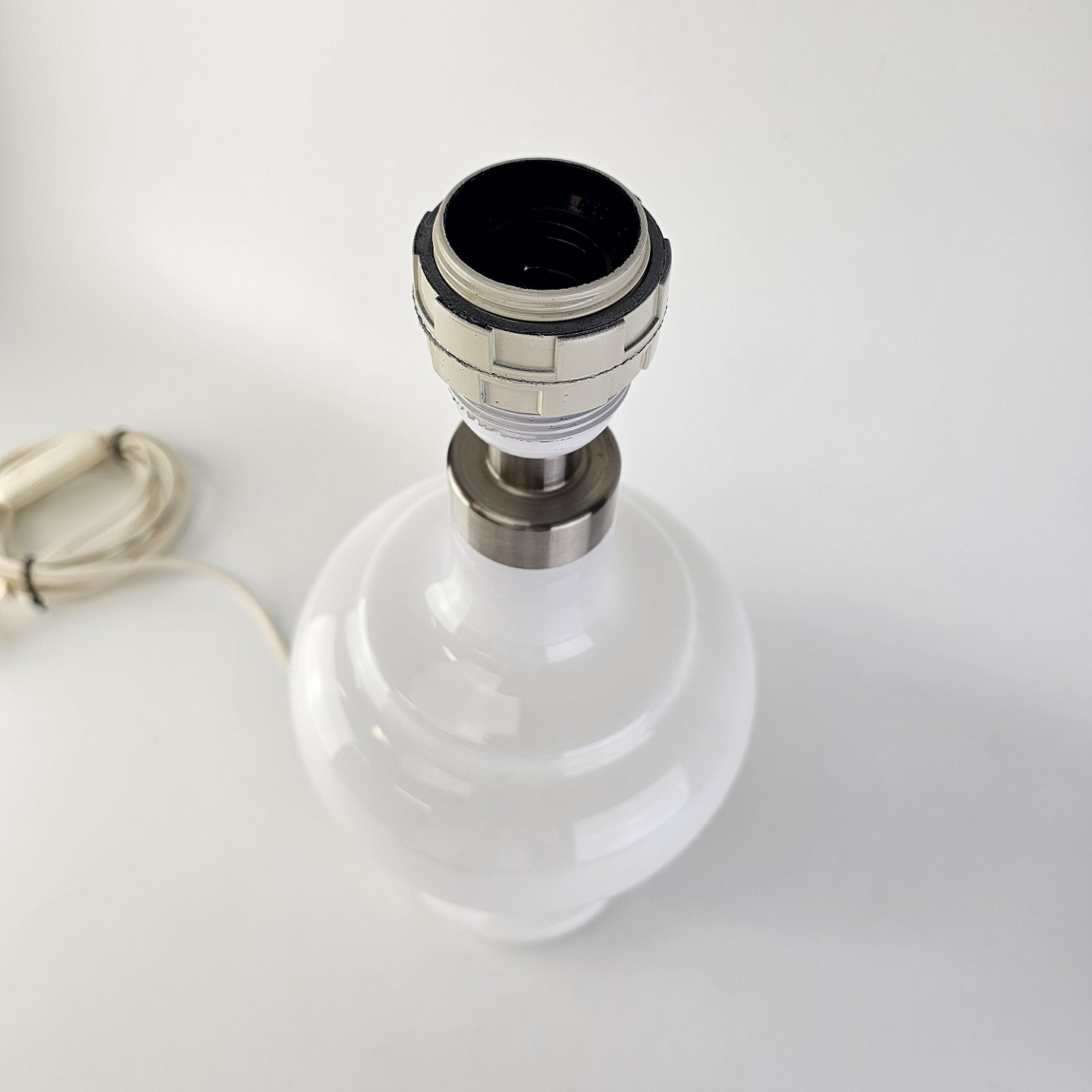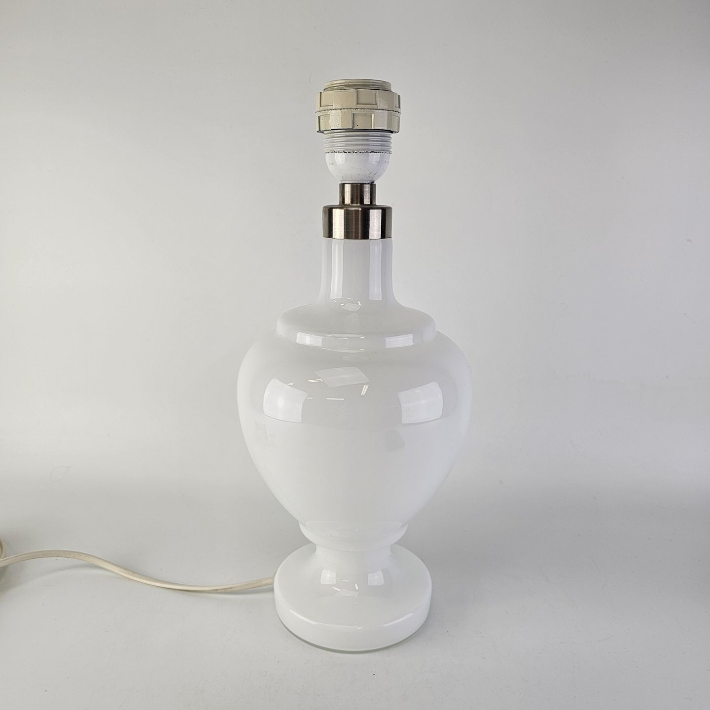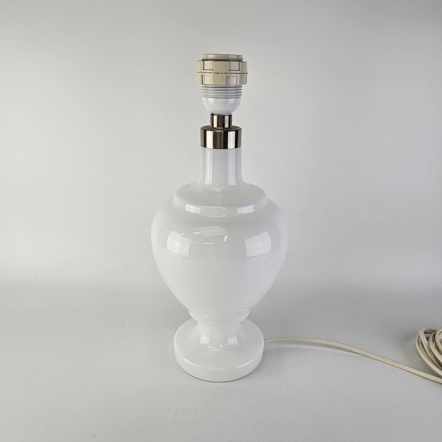 Roma bordlampe i hvidt opalglas, med stål fatning.
