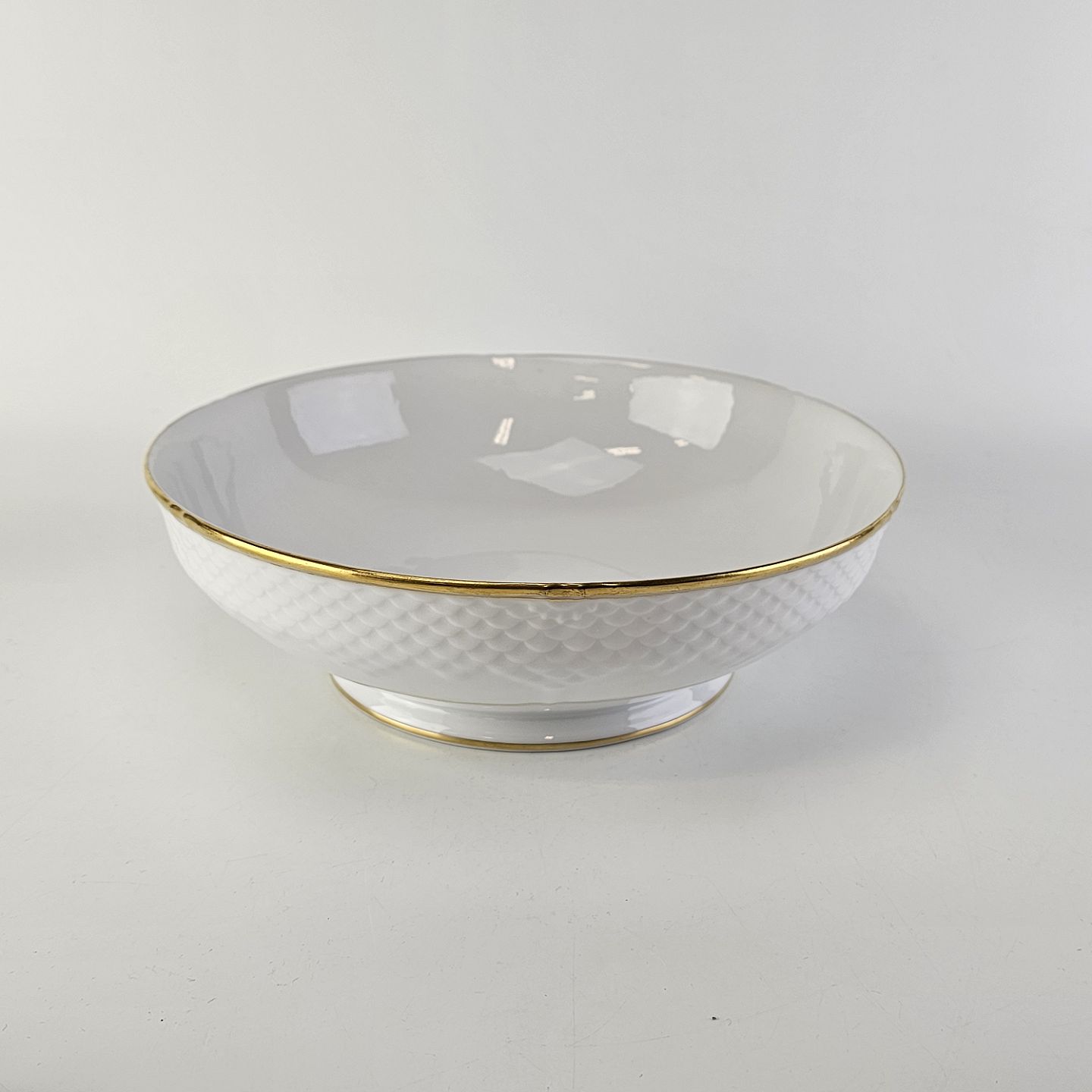 Service i lyst porcelæn med skælform og gylden kant