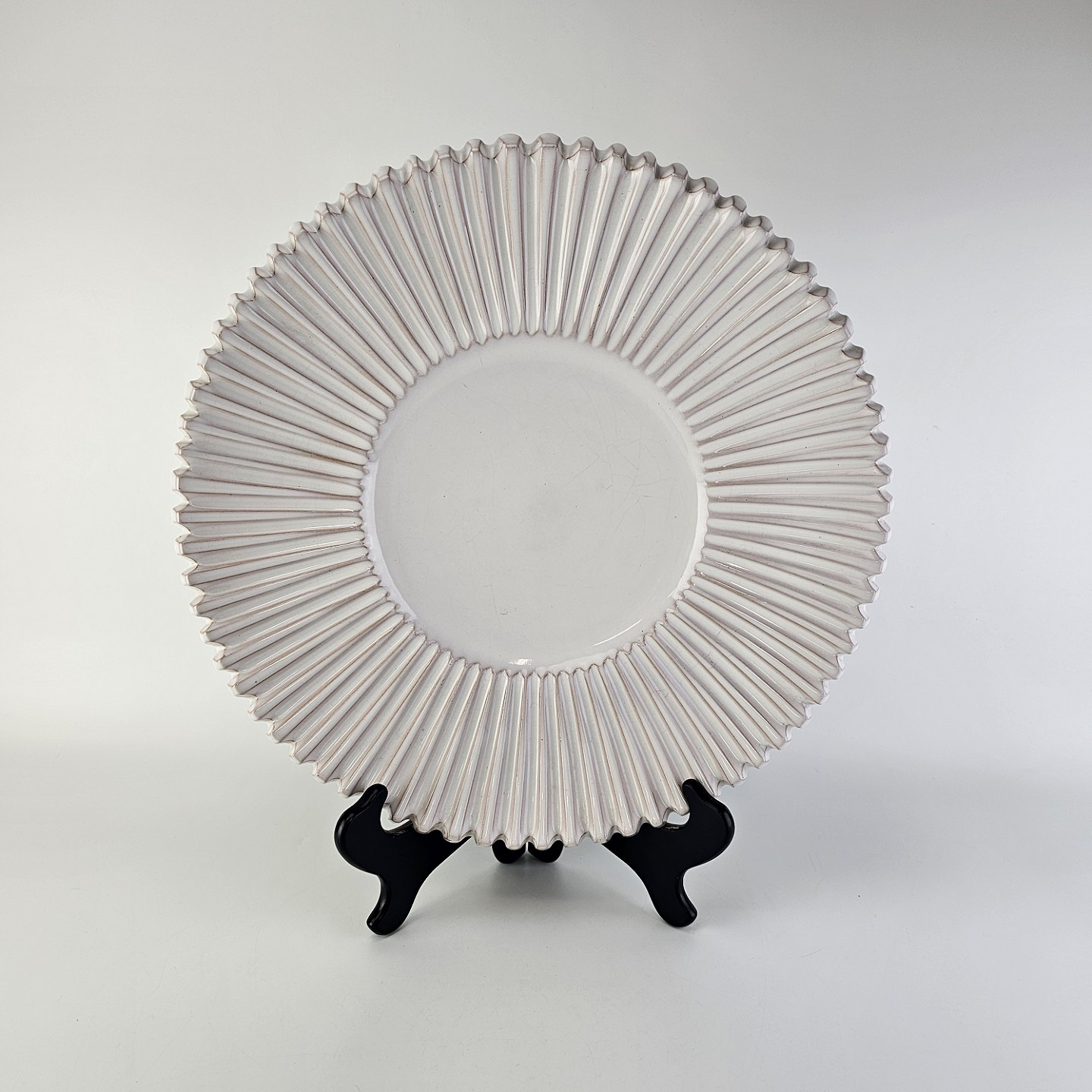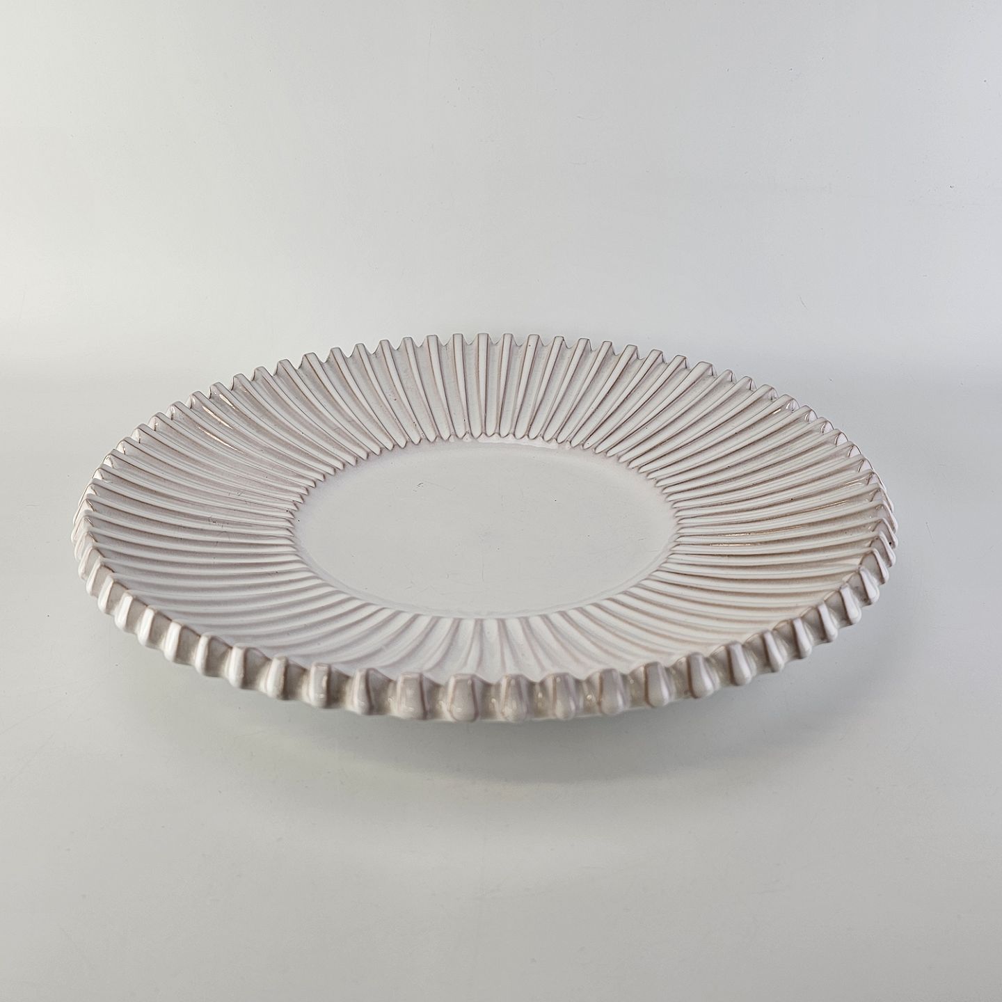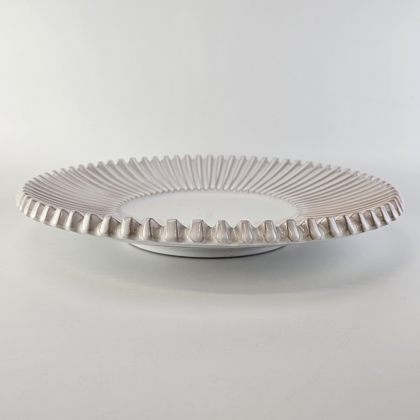 Stort riflet fad i hvidt porcelæn