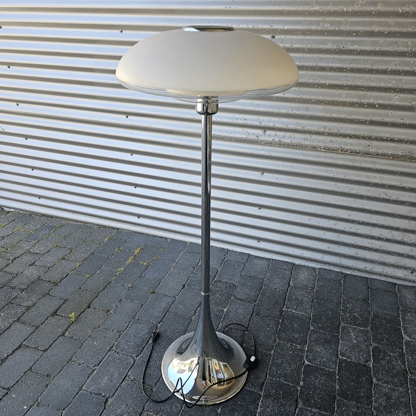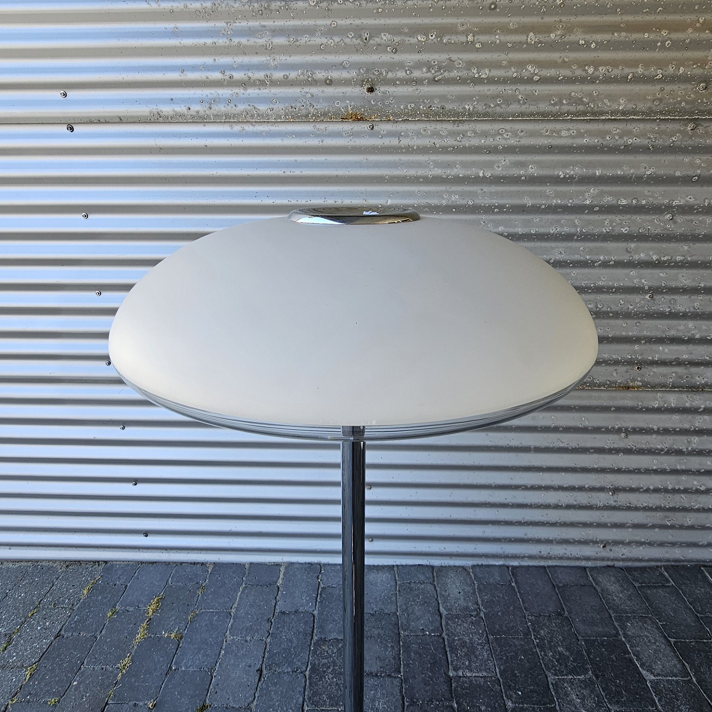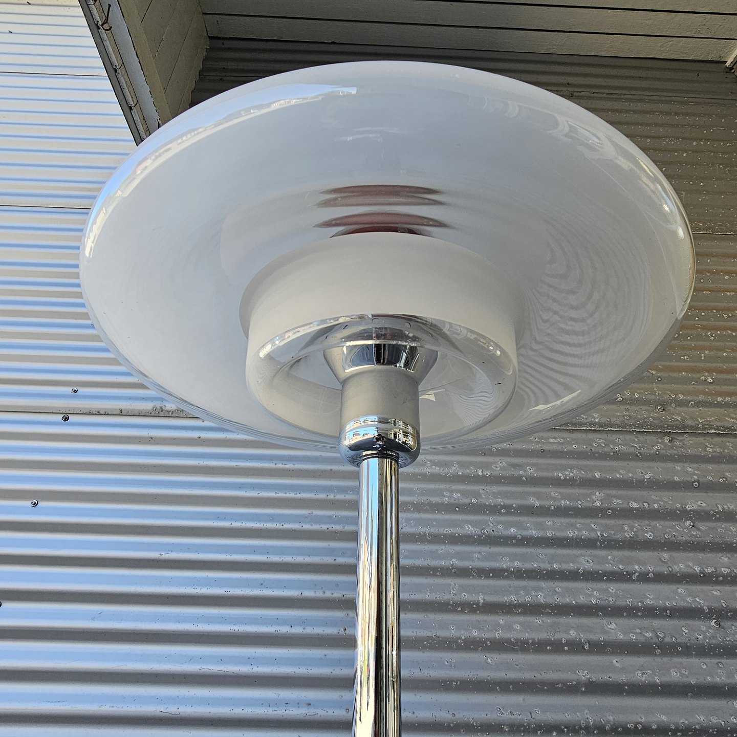 Europa standerlampe i krombelagt stål med skærm af opalhvidt og klart glas