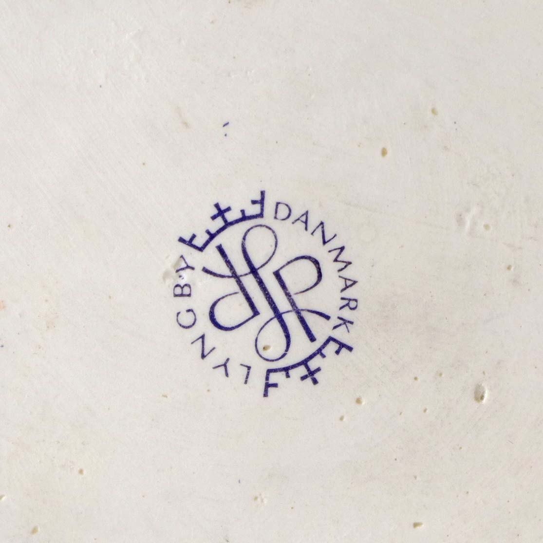 Stellet er fremstillet i ildfast glat porcelæn dekoreret med mørkeblå tangenter på hvid baggrund.