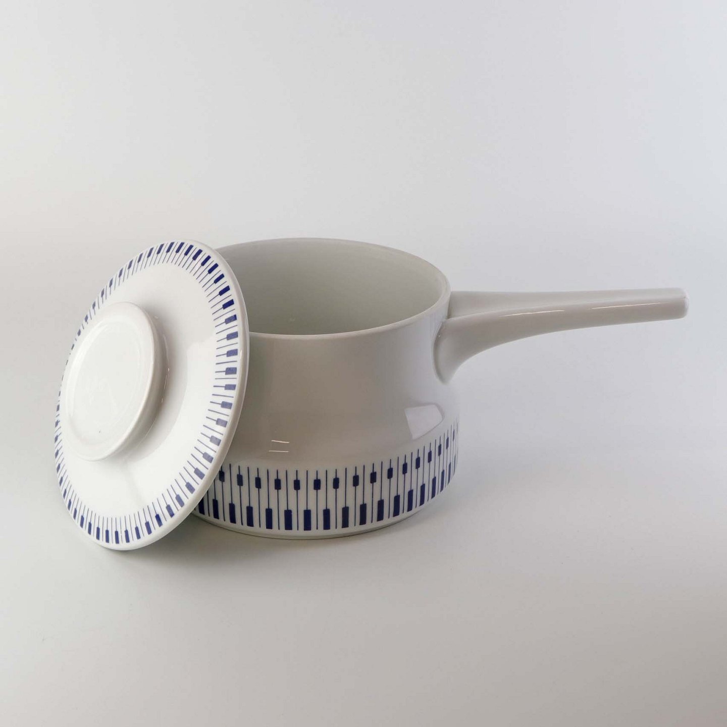 Kasserolle med låg og hank i porcelæn fra stellet Danild 64 - også kendt under navnet Tangent.