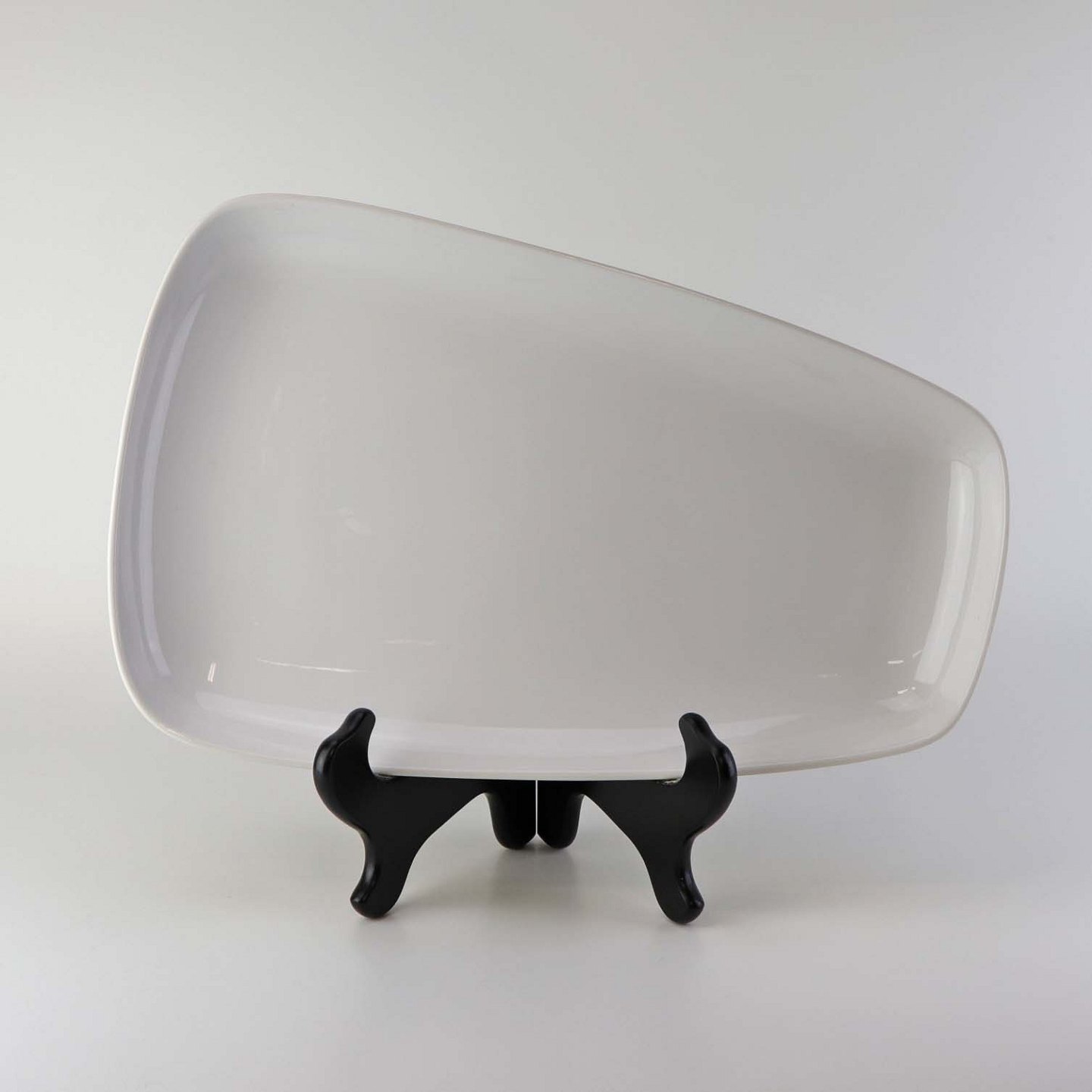 Stort trekantet serveringsfad i porcelæn fra stellet Gul glasurfarvet.