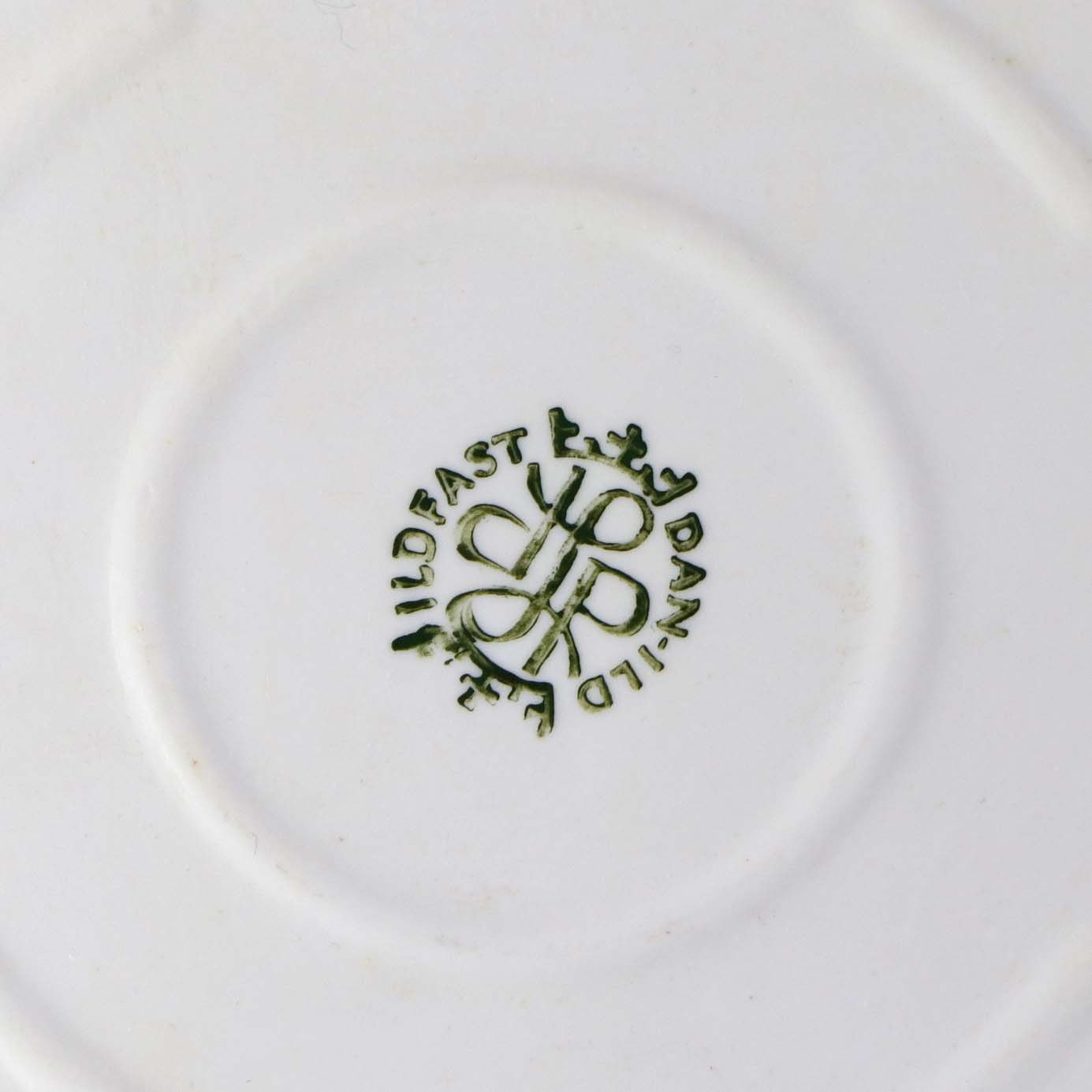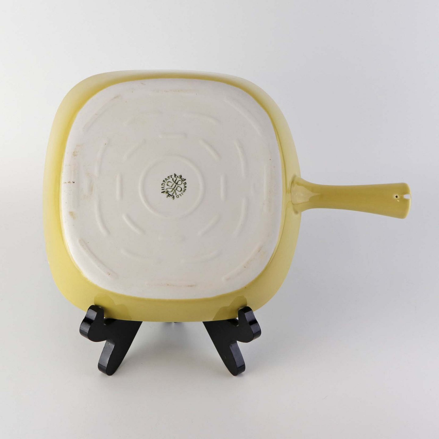 Pande med hank i porcelæn fra stellet Gul glasurfarvet.