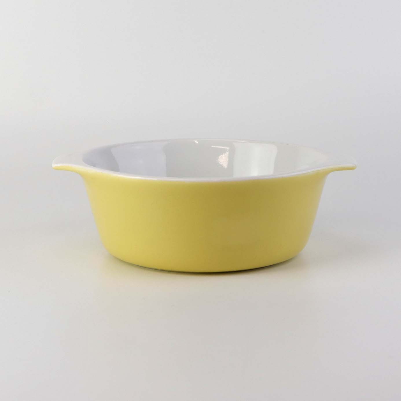 Lille skål med hanke i porcelæn fra stellet Gul glasurfarvet.