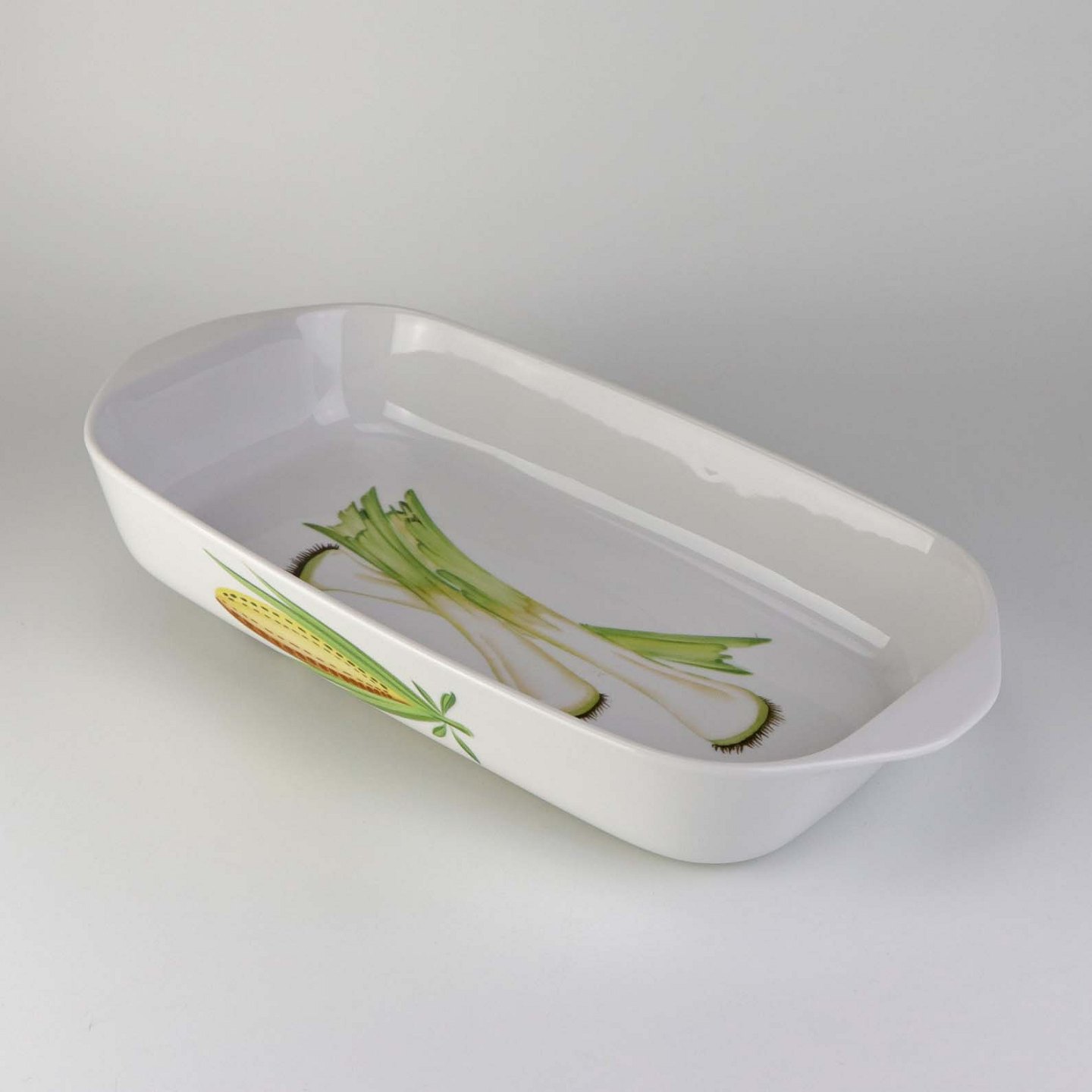 Aflangt fad med hanke i porcelæn fra stellet Danild 50 Frugt og grønt - også kendt som Picnic stellet.