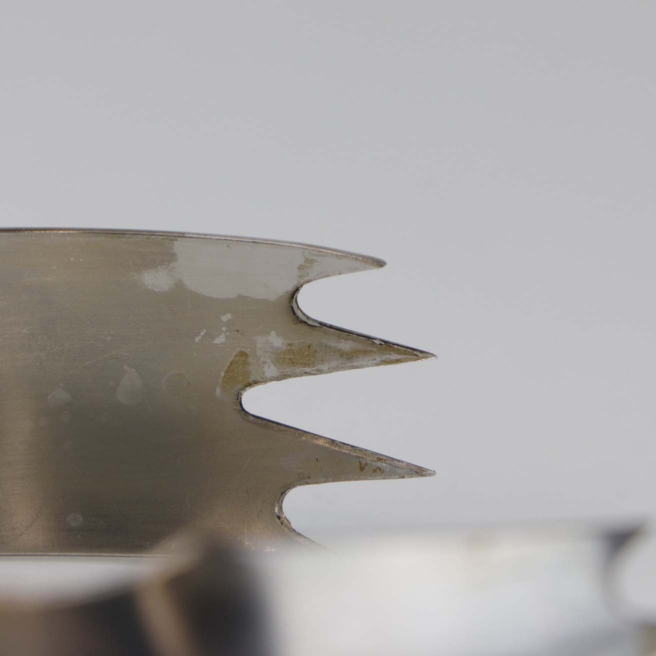 Fremstår med udvendige bruggspor på spanden samt brugsspor på tangens metal.