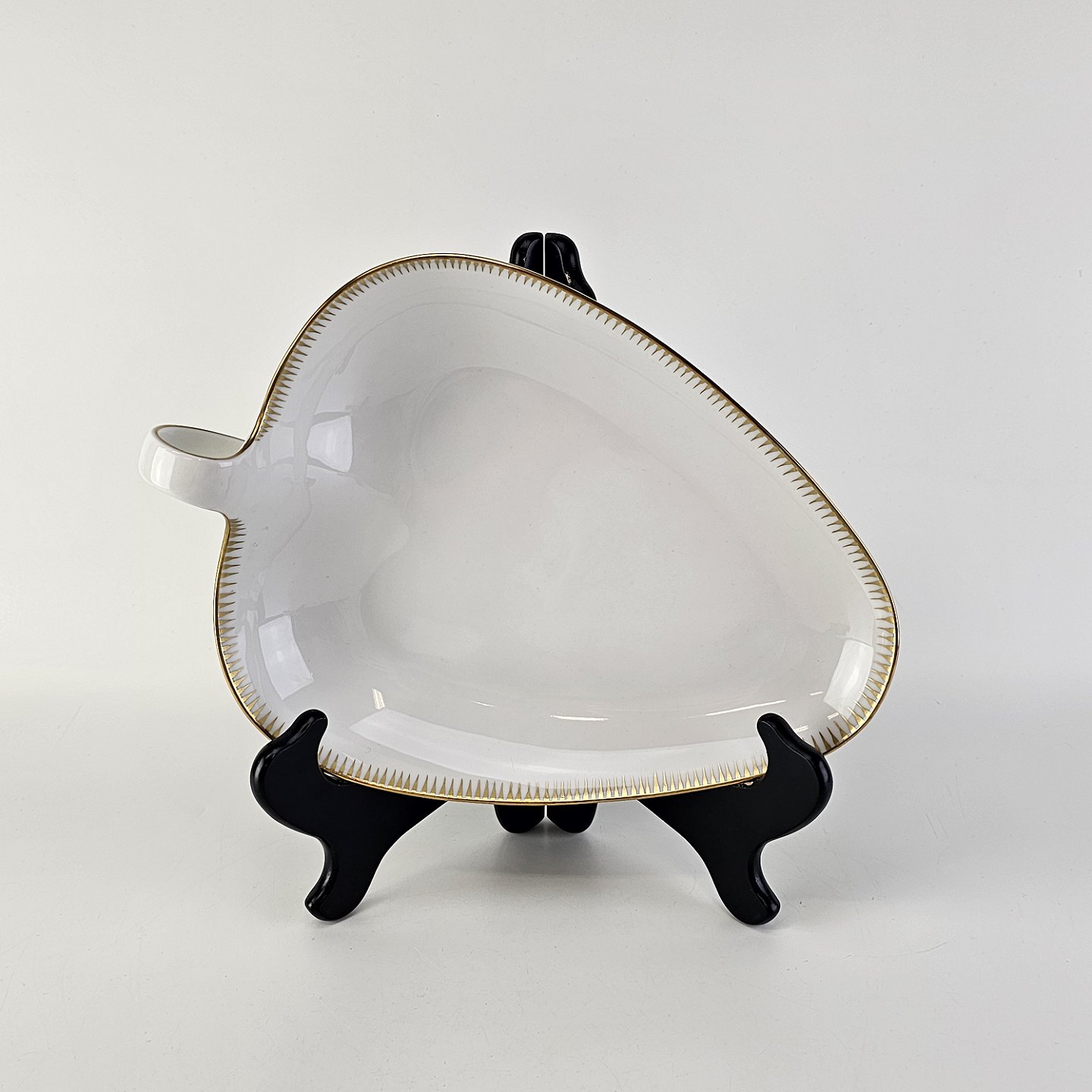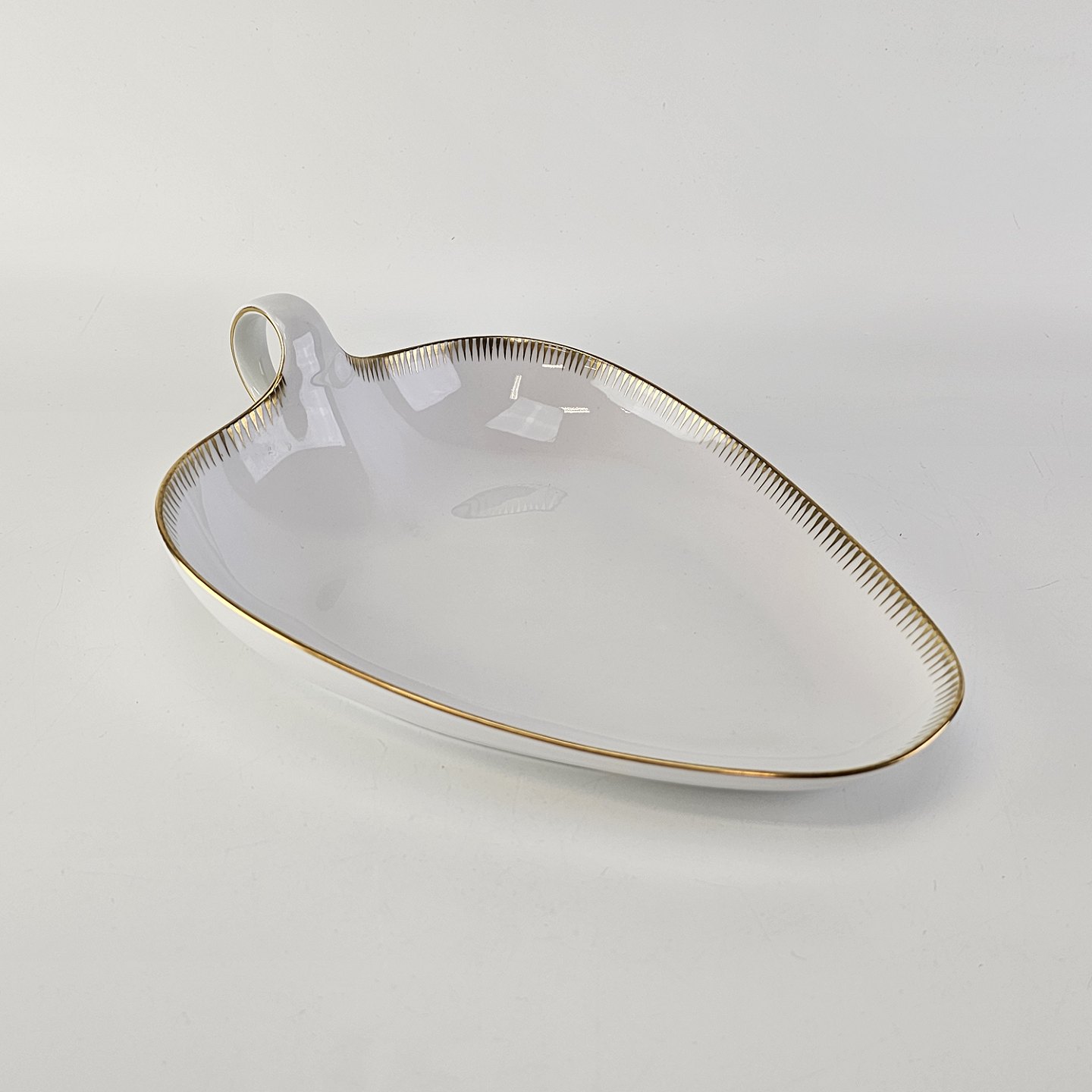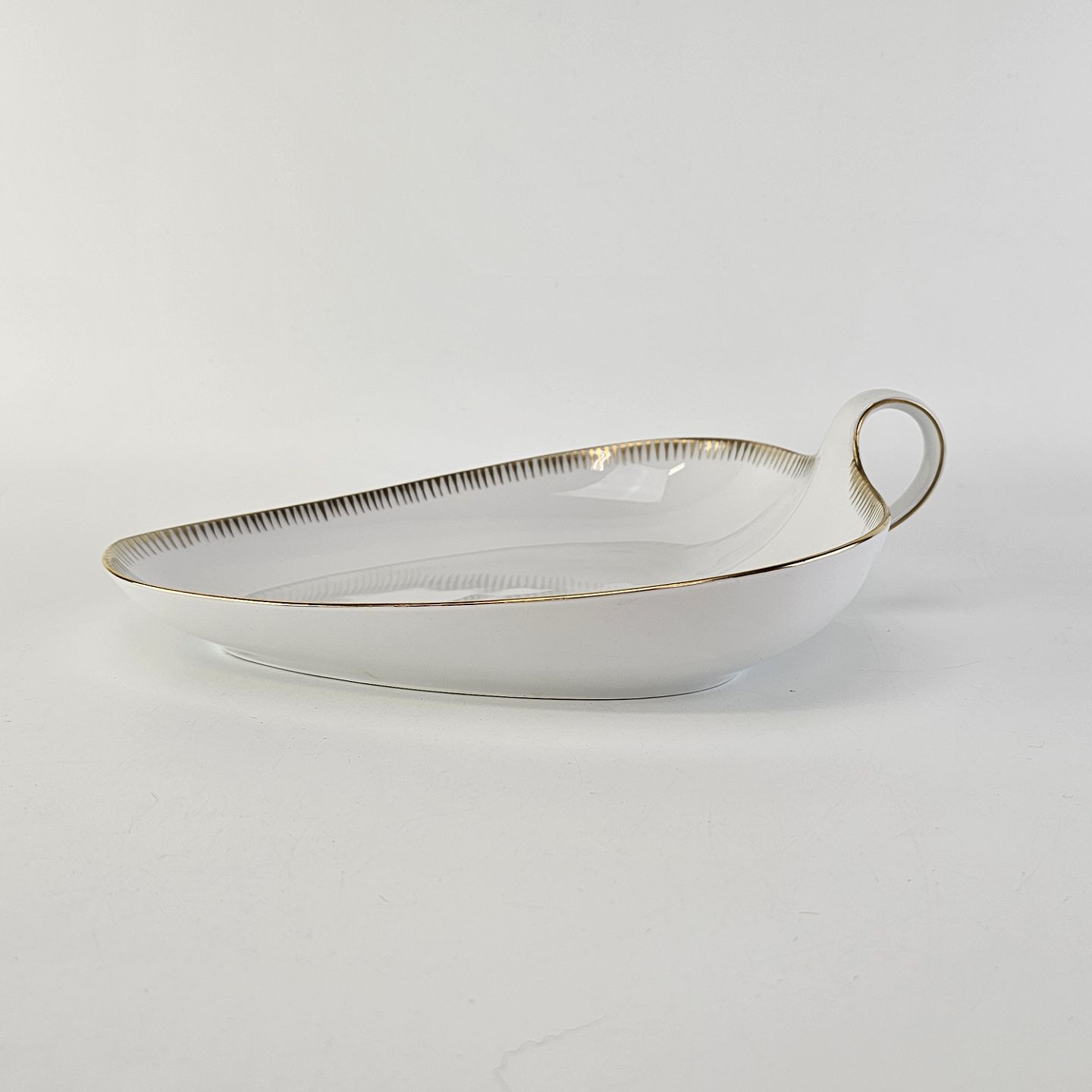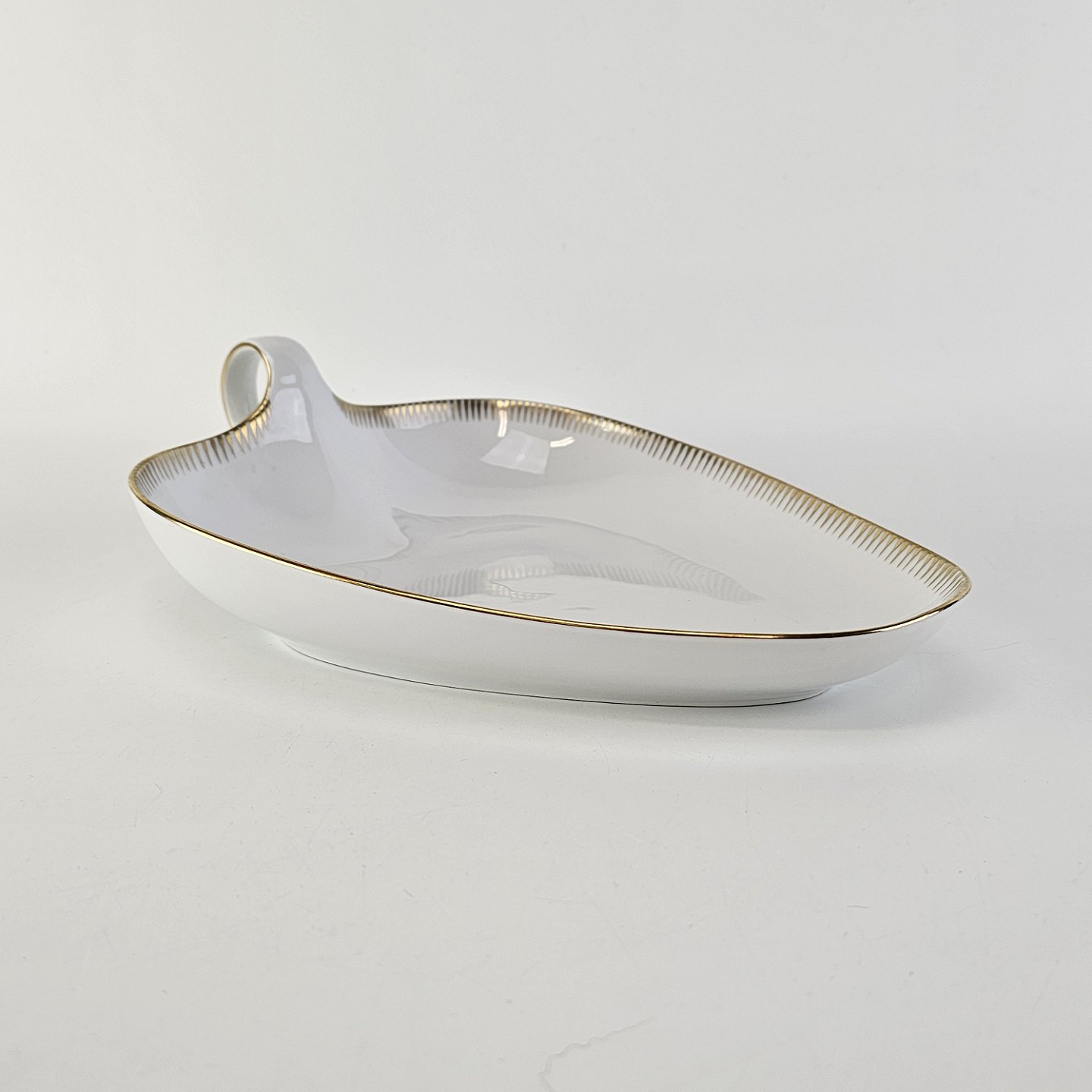 Hvidt porcelæn dekoreret med guld motiv og guldkant