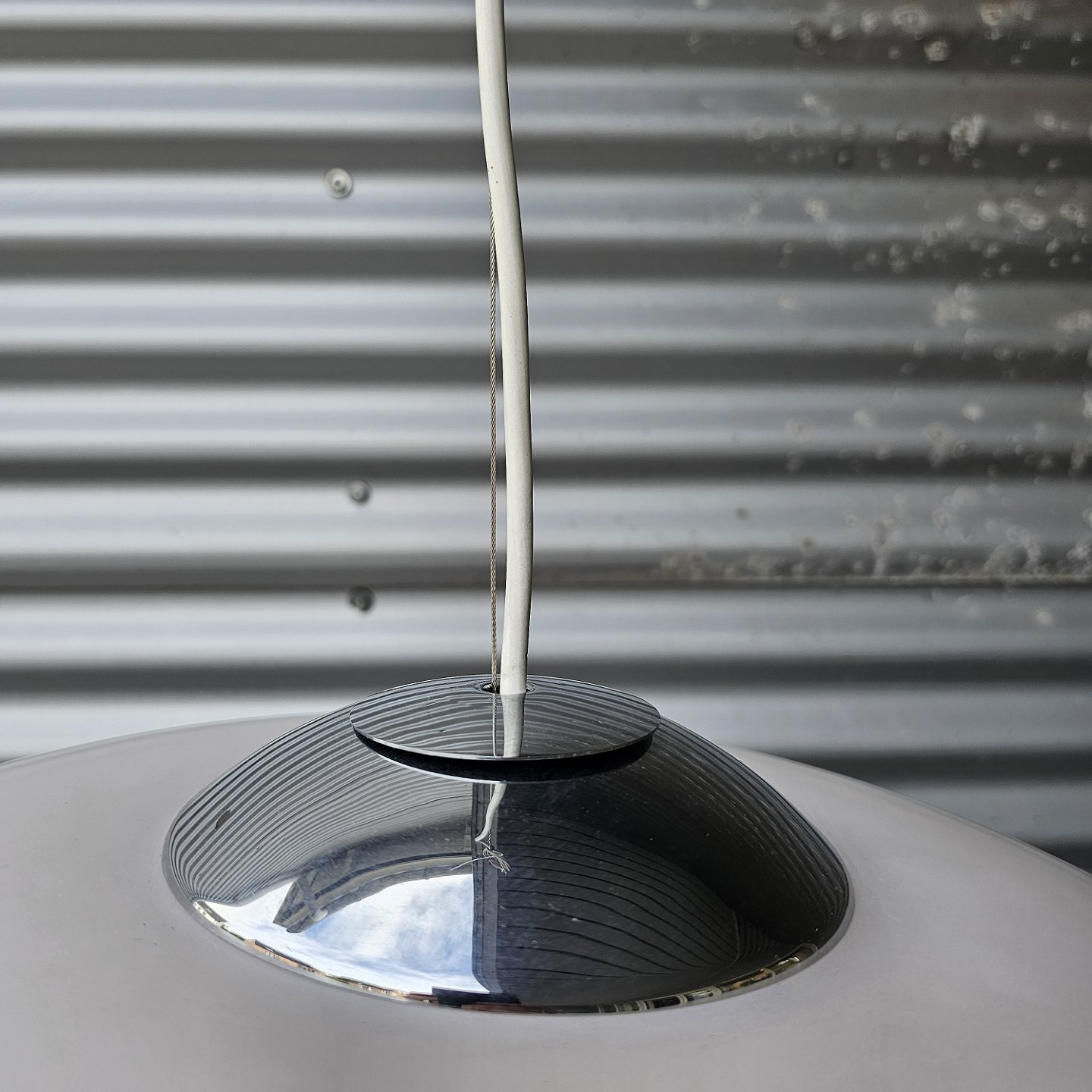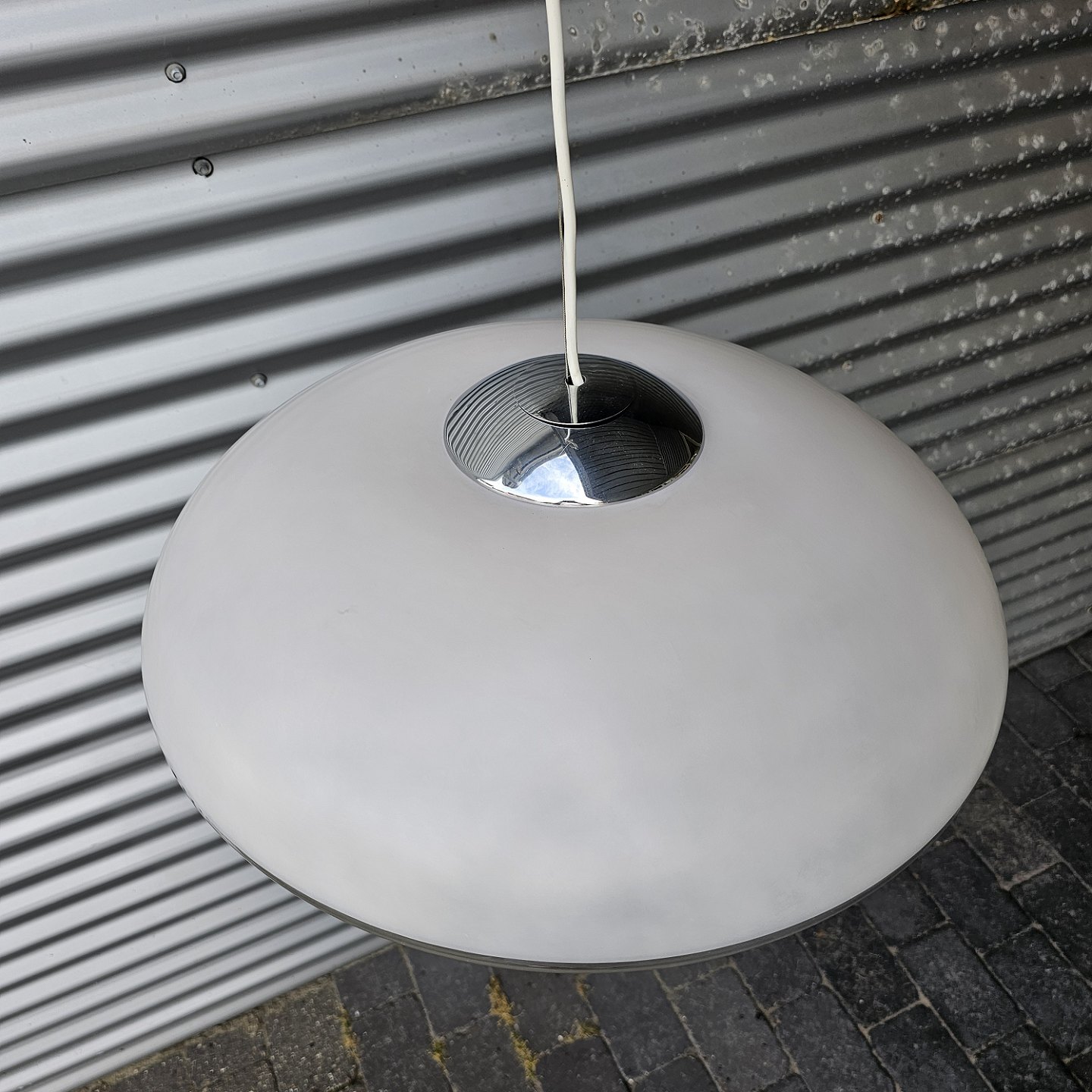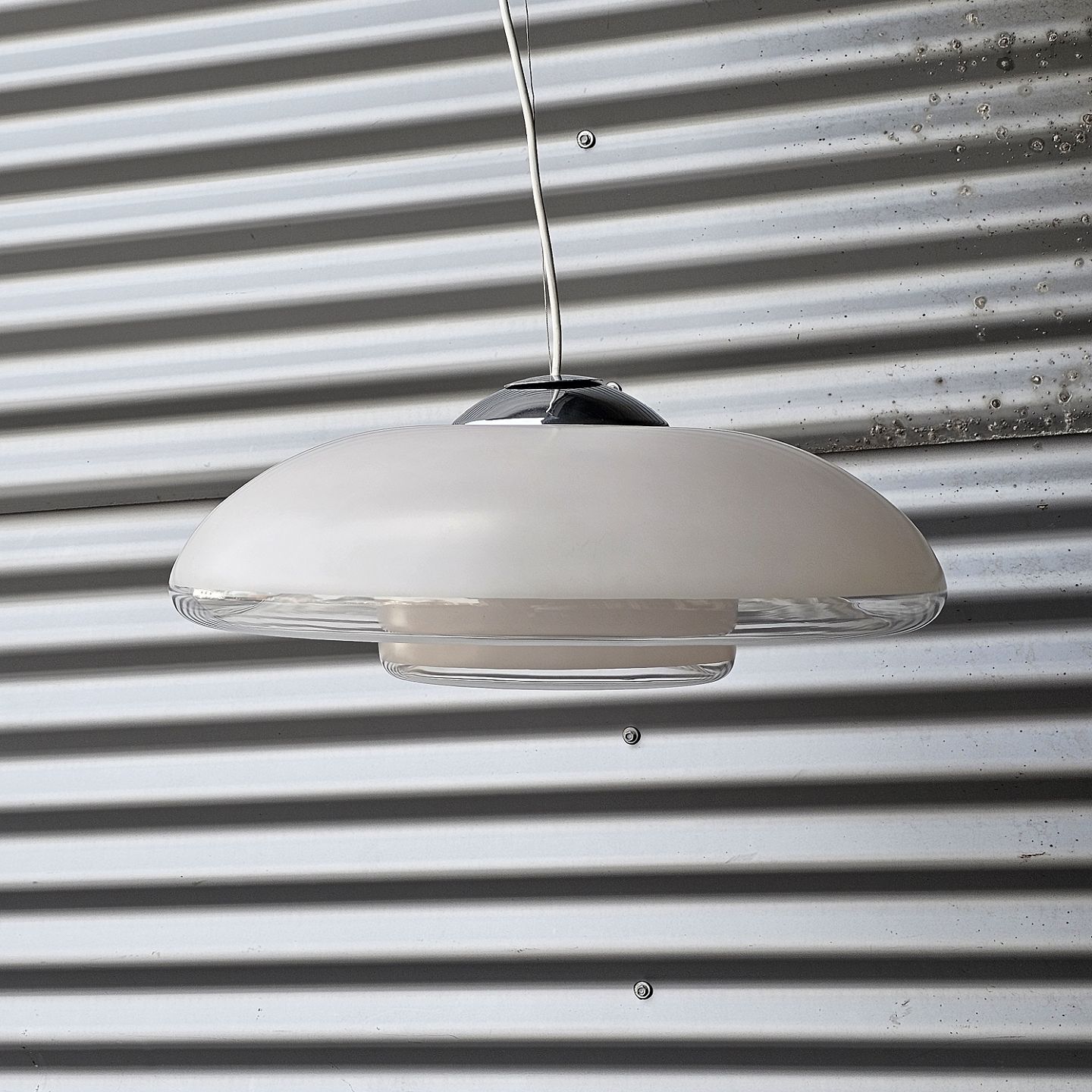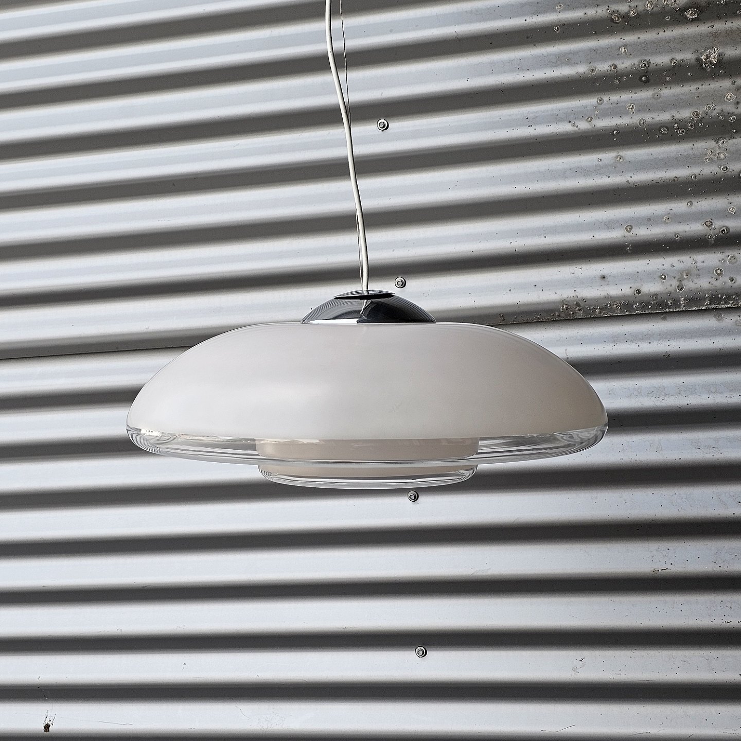 Europa pendel i krombelagt stål med skærm af opalhvidt og klart glas