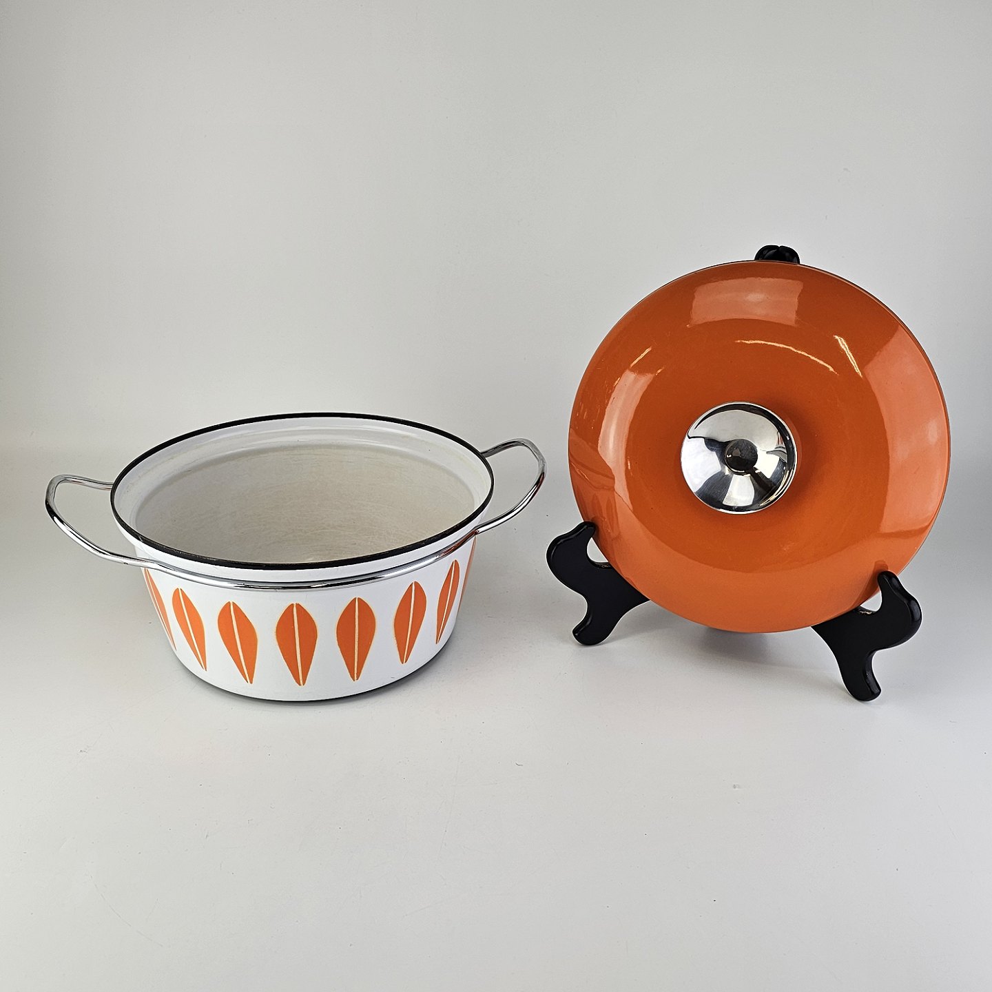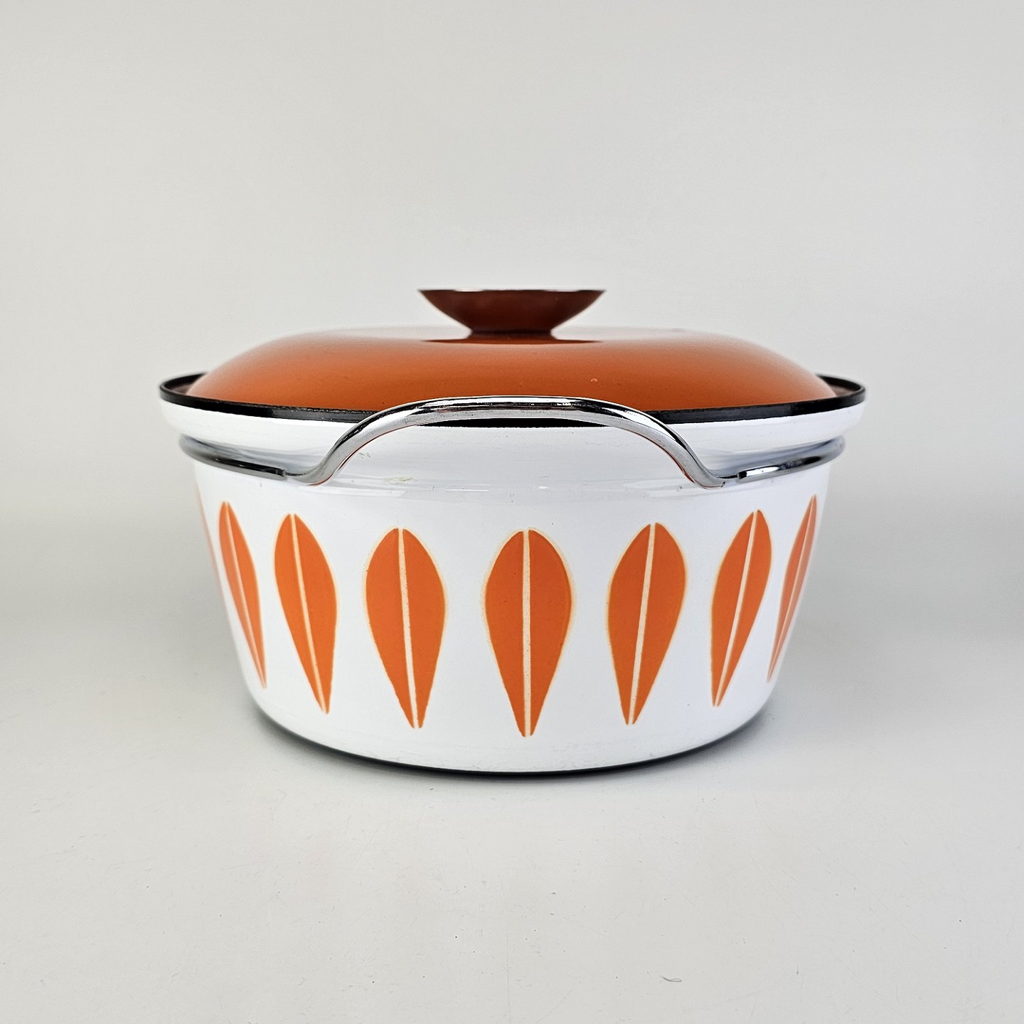Lotus emalje gryde med orange motiv og låg