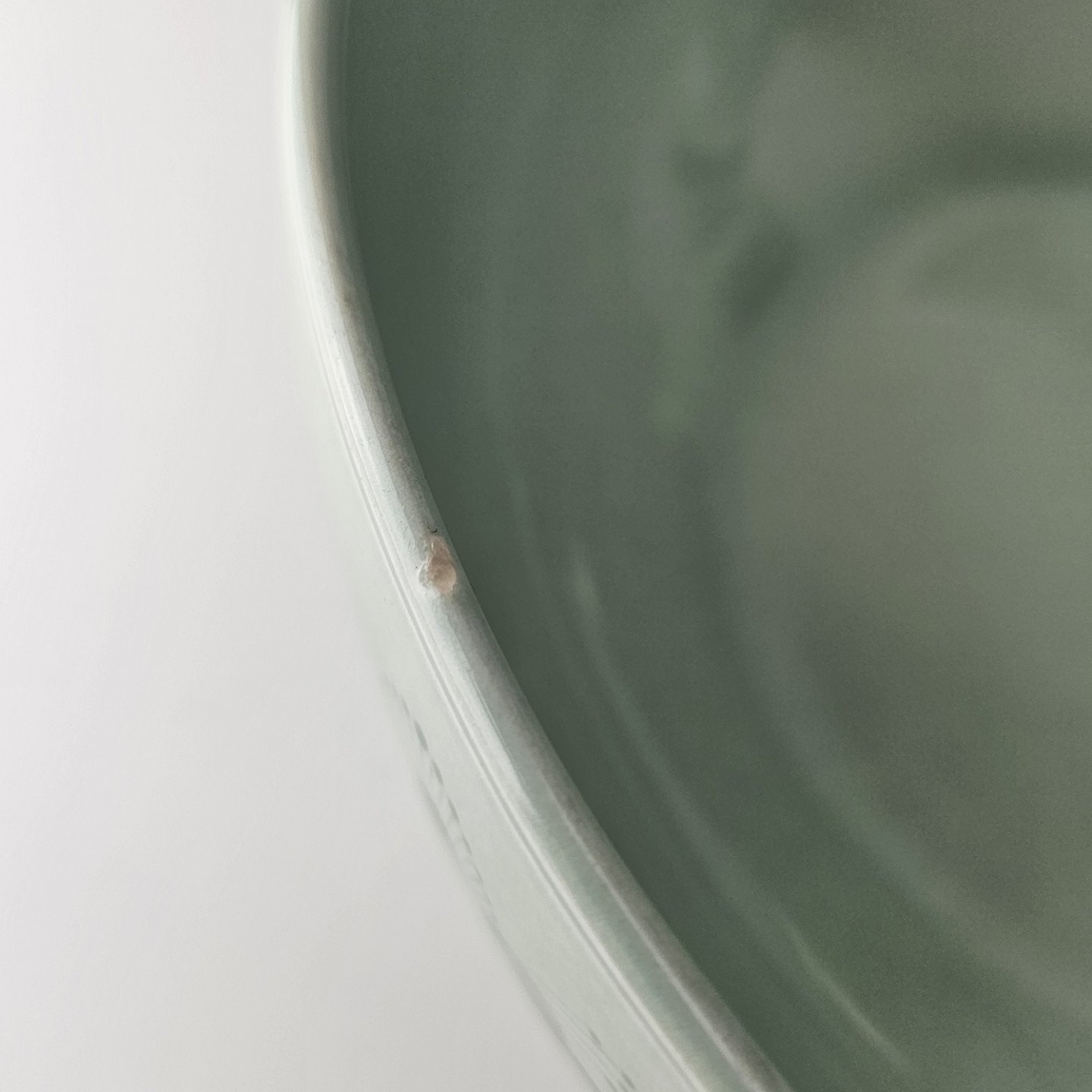 Fremstår med små hak i kanten og en misfarvning