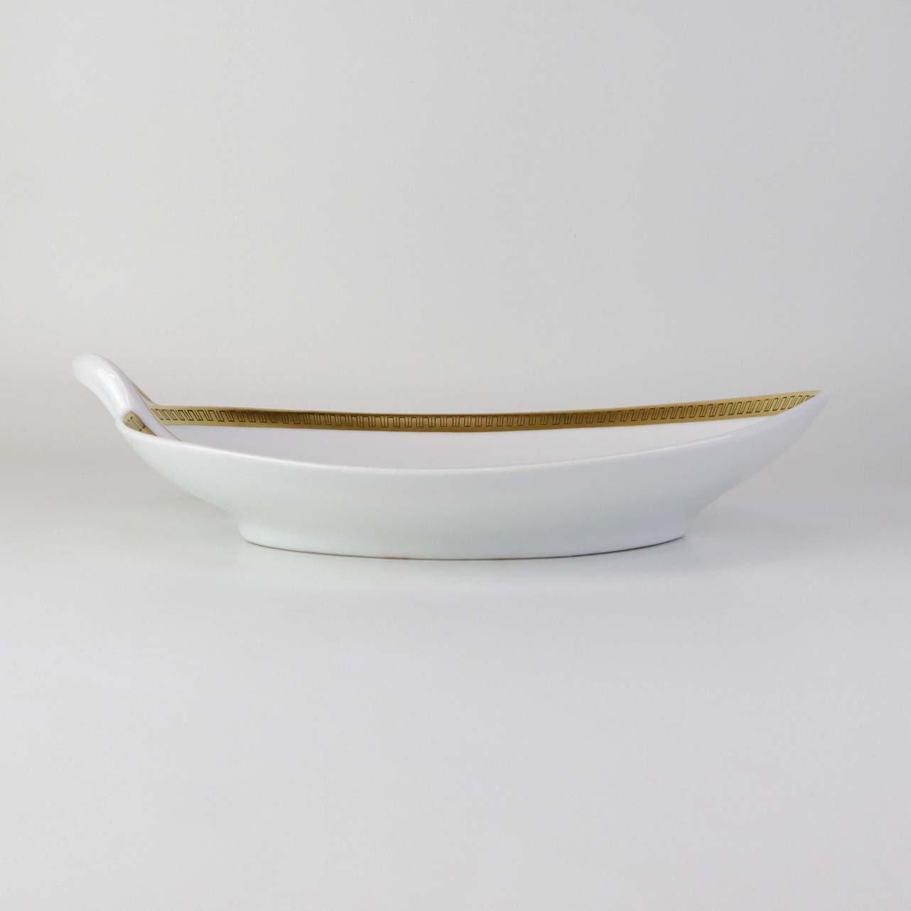 Bladformet fad med hank i porcelæn fra stellet Trend 450