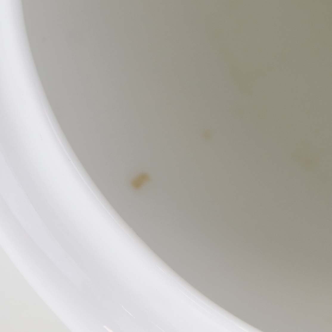 Fremstår med lettere slid på lågets guldbort samt enkelte brugsspor på inderside og yderside af kanden.