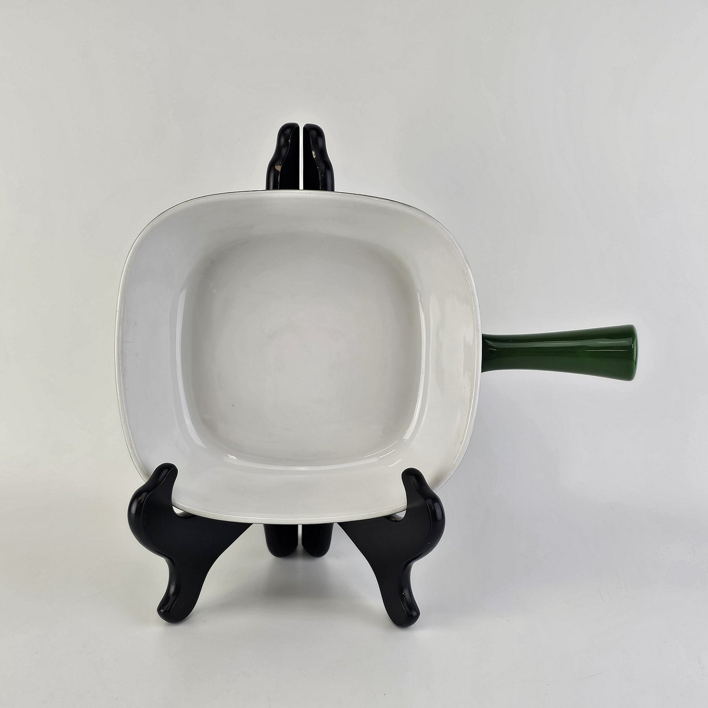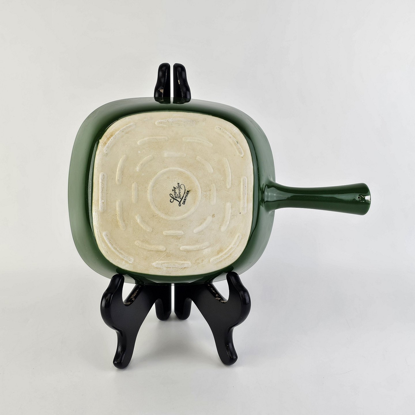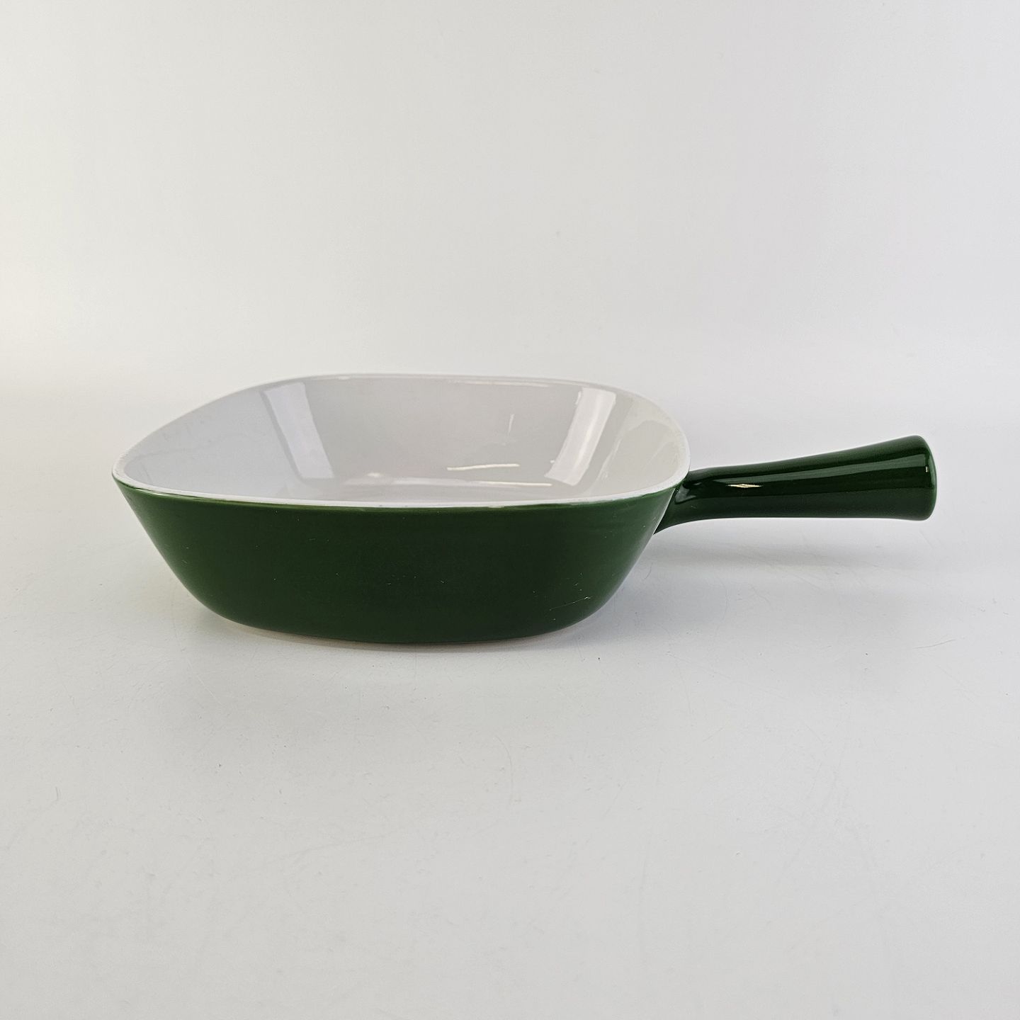 Firkantet fad med håndtag i porcelæn fra stellet Grøn Glasurfarvet