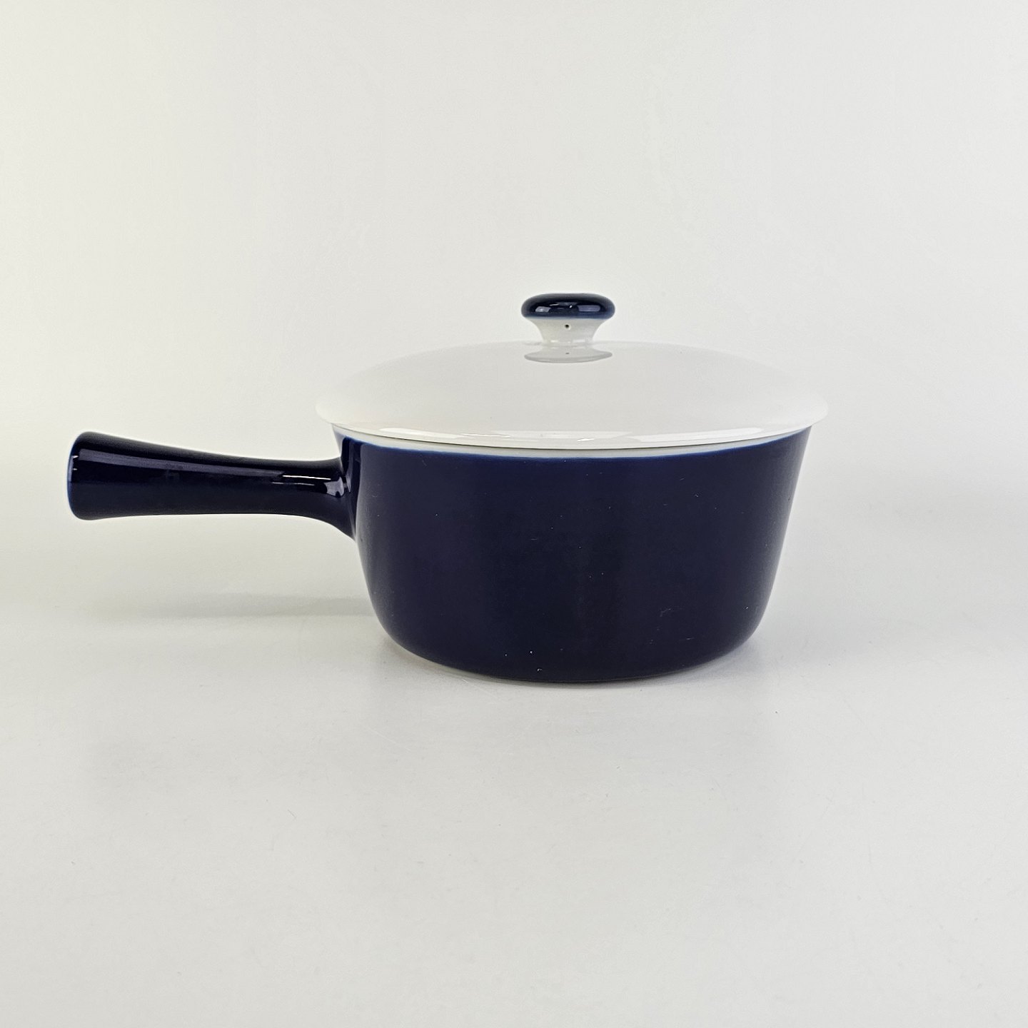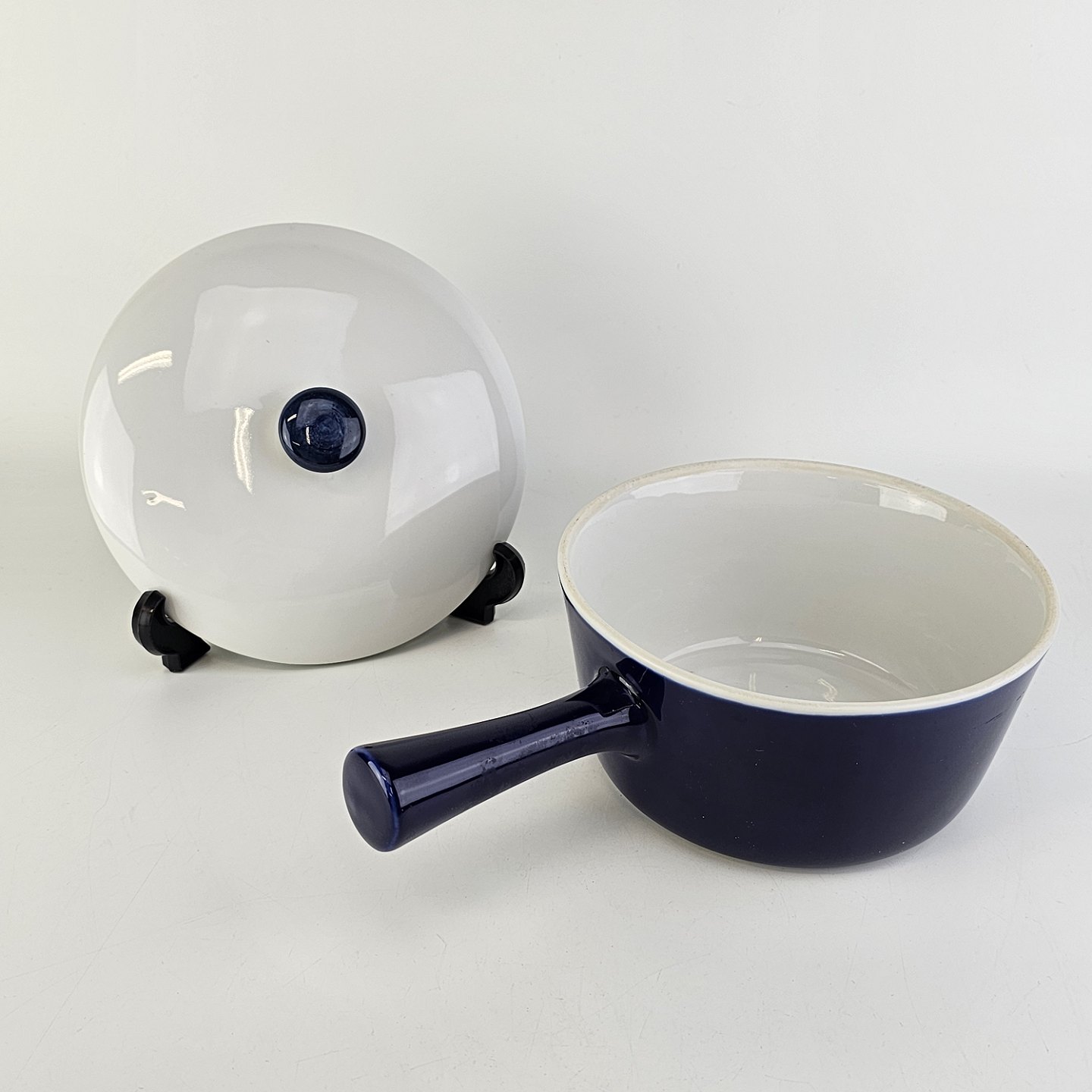 Kasserolle med låg i porcelæn fra stellet Blå Glasurfarvet