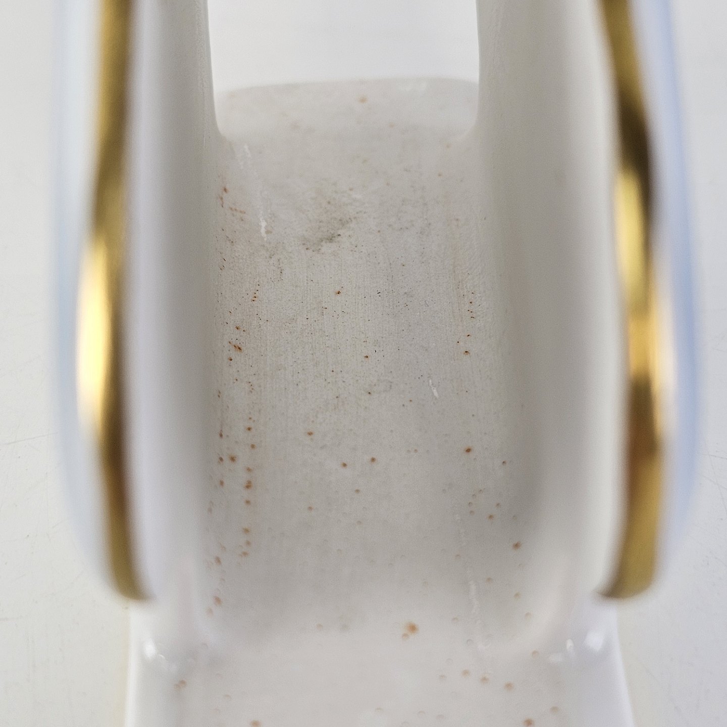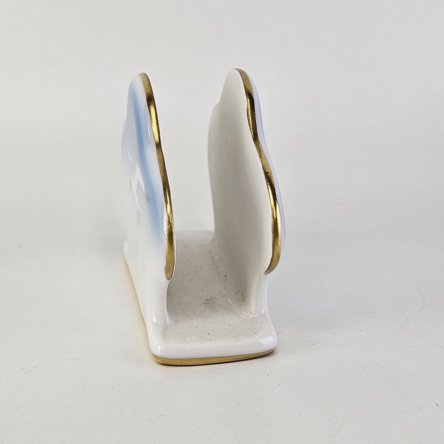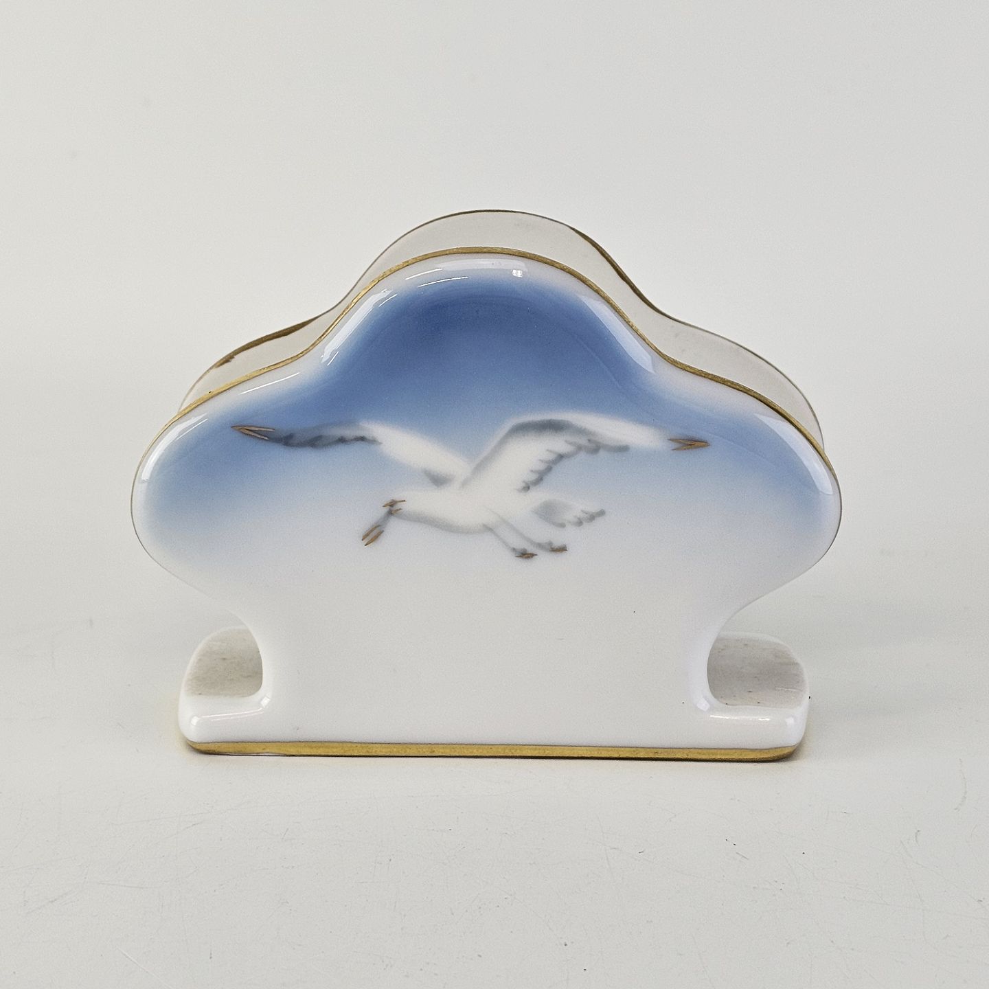 Servietholder af porcelæn i blålige farver med motiv af måger og guldkant