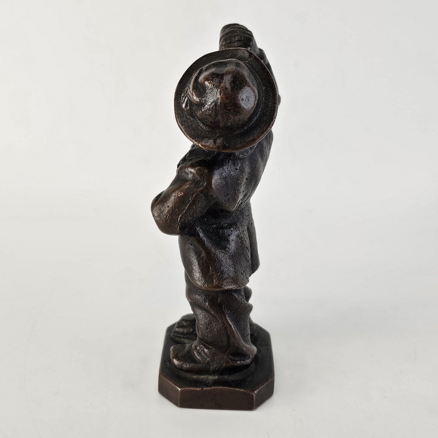 Statuette i bronze med motiv af en mand, som drikker af en flaske