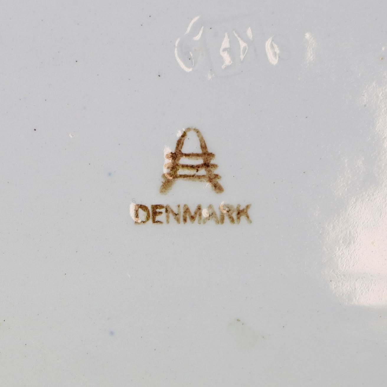 Fremstår med mørkning under glasuren på fadets underside.