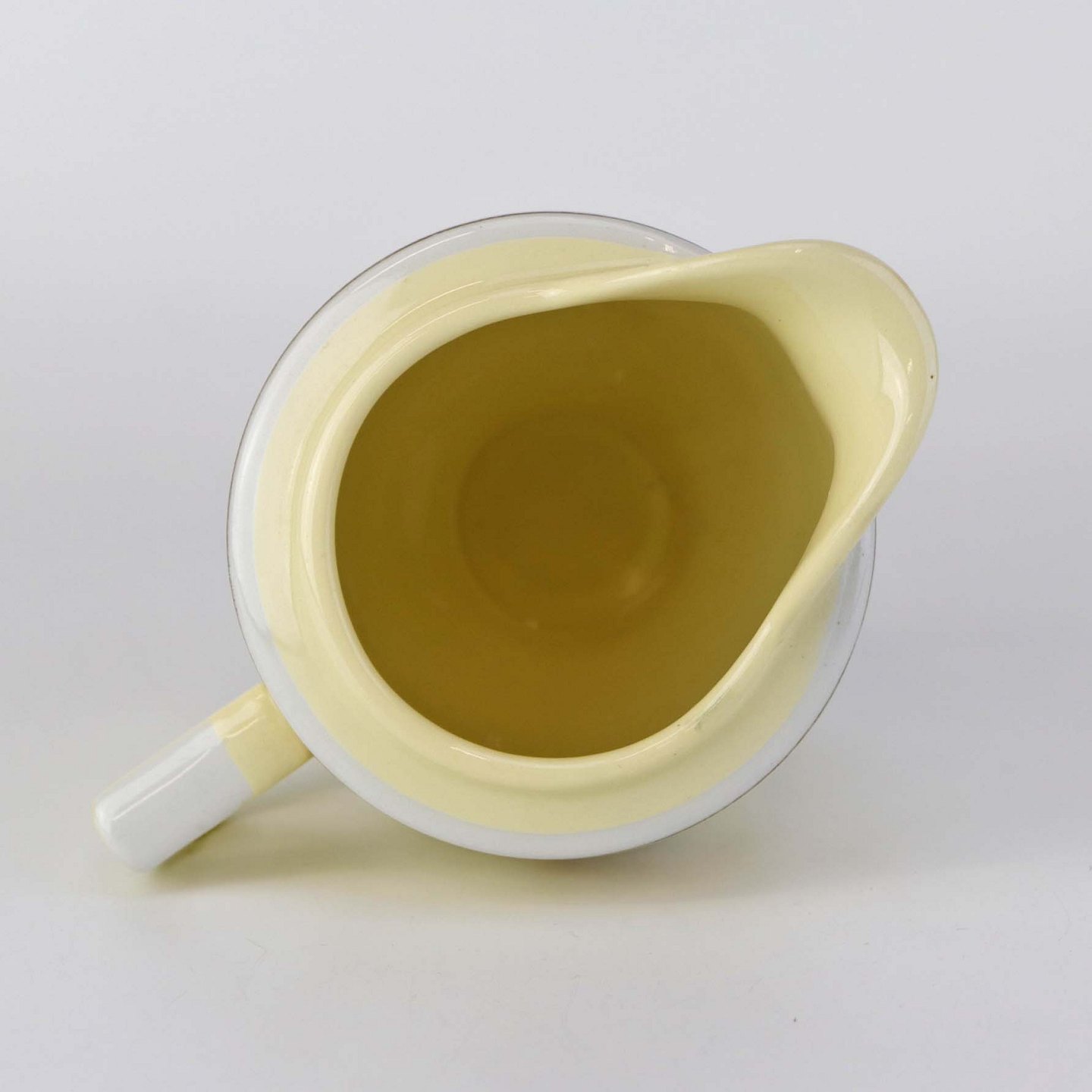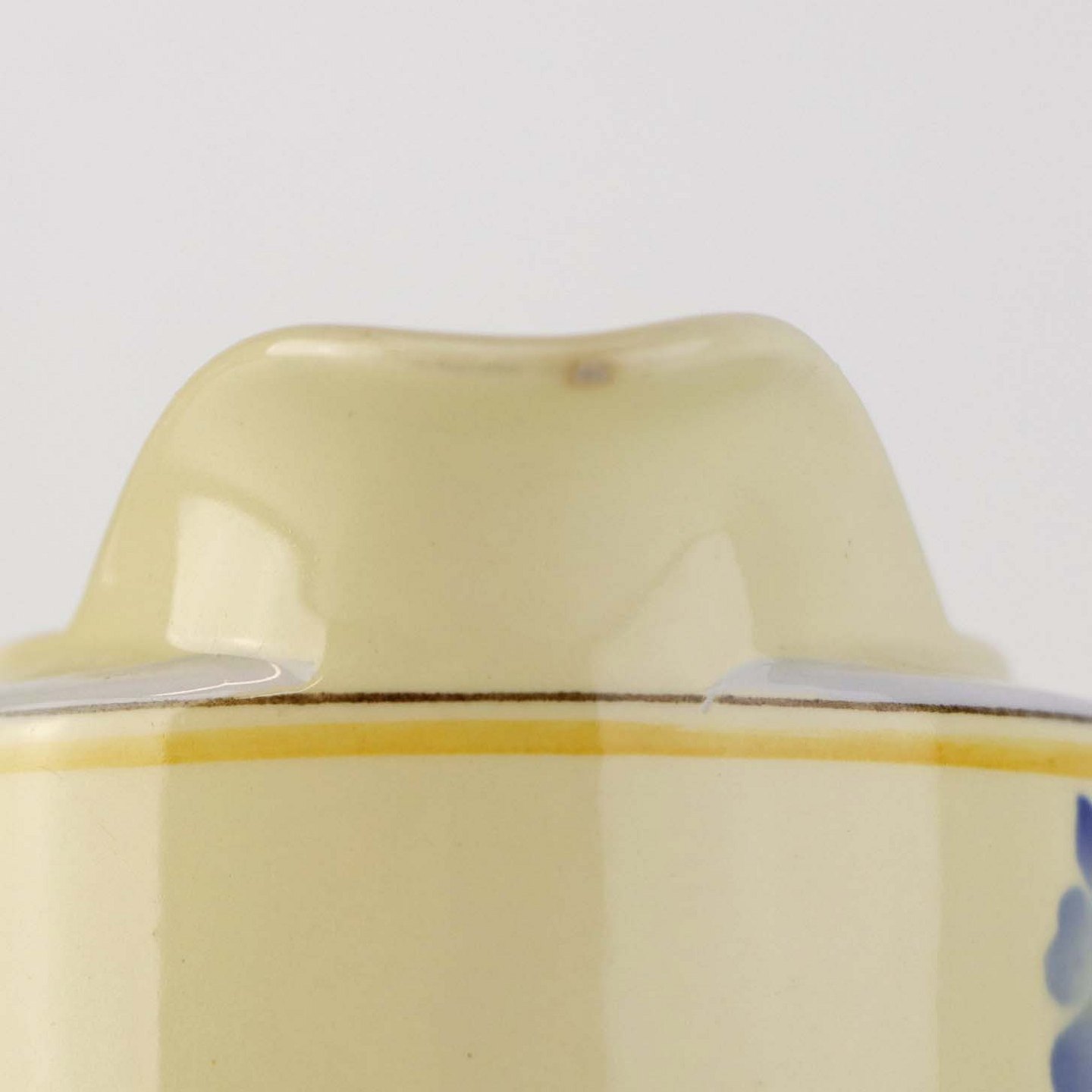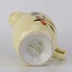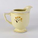 Stel i glat gul fajance med dekoration af farverige og forskelligartede blomster samt med gul og sort kantstreg.