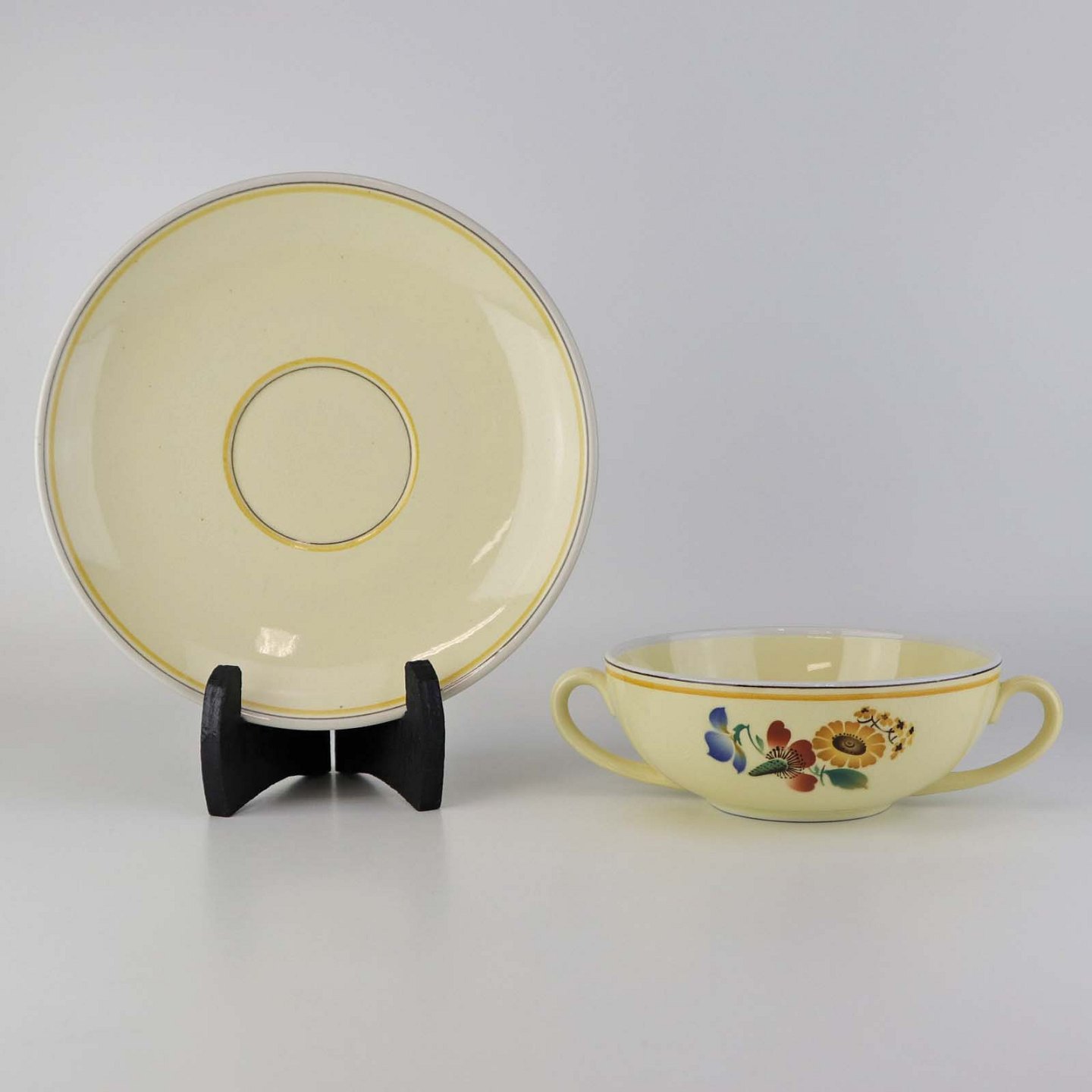 Suppekop med underkop i fajance fra stellet Elisabeth. Nr. 1619