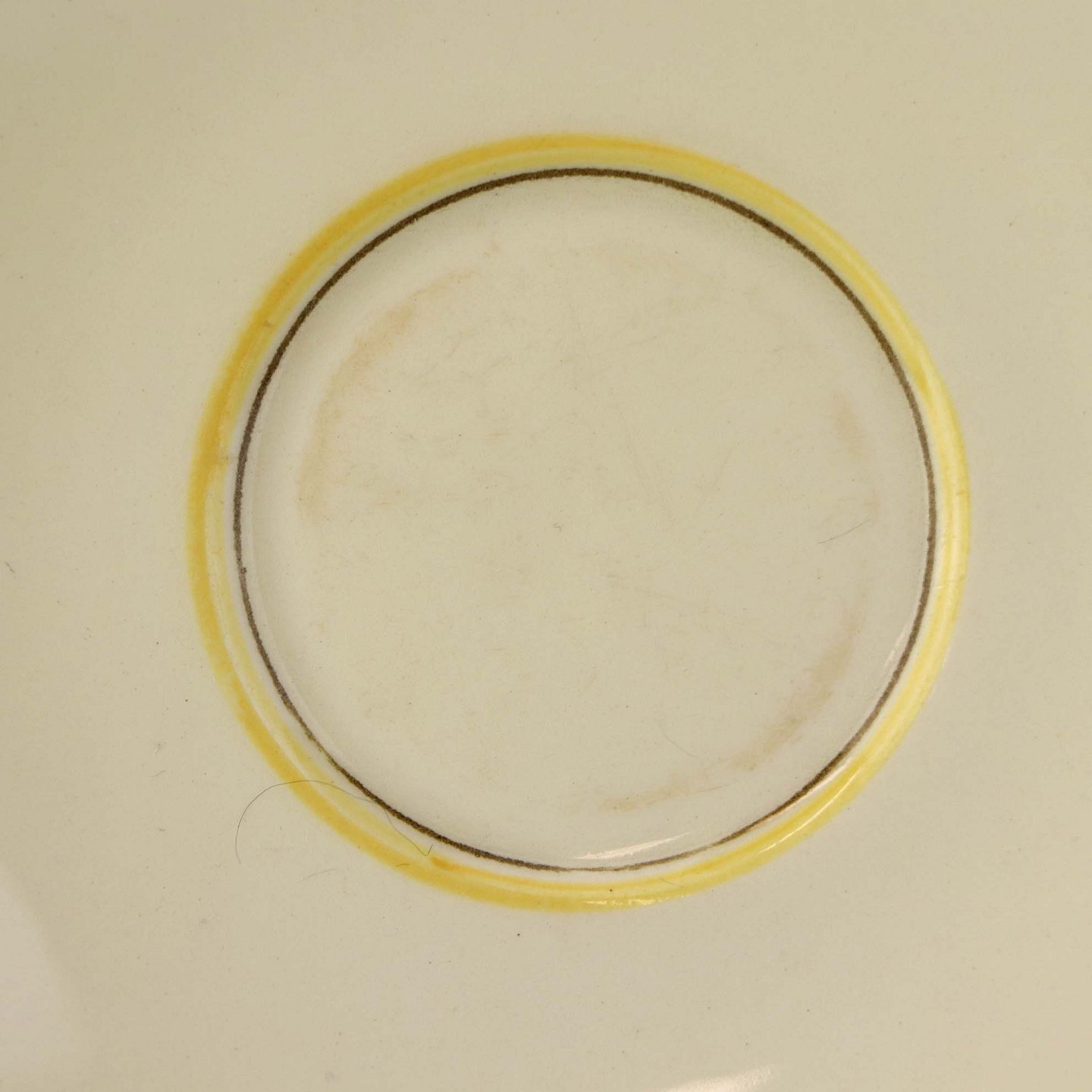Fremstår med krakkeleringer i glasuren, mindre slid på glasuren på underkoppen og mindre mørknet område under glasuren på bagsiden af underkoppen.