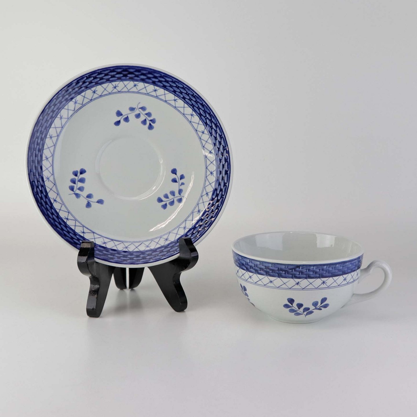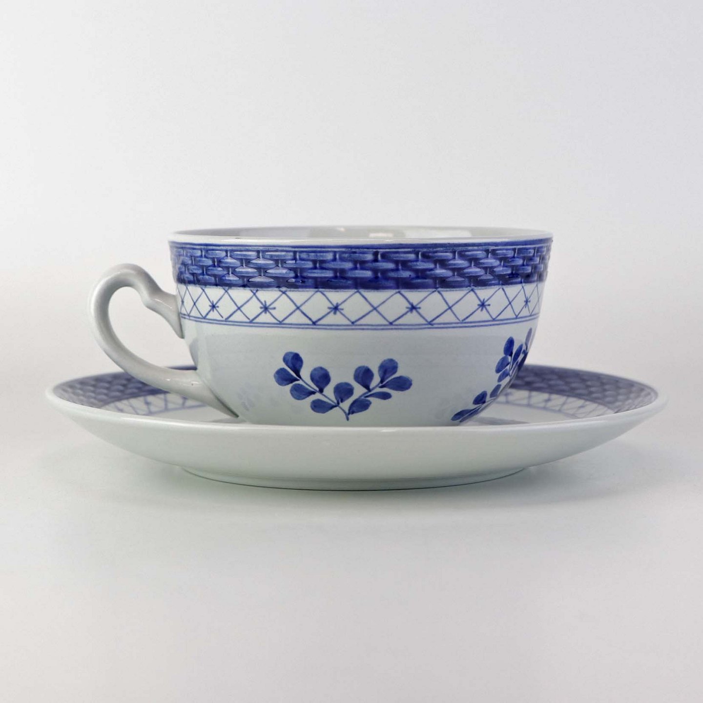 Tekop med underkop i fajance fra stellet Blå Tranquebar. Nr. 11/1115