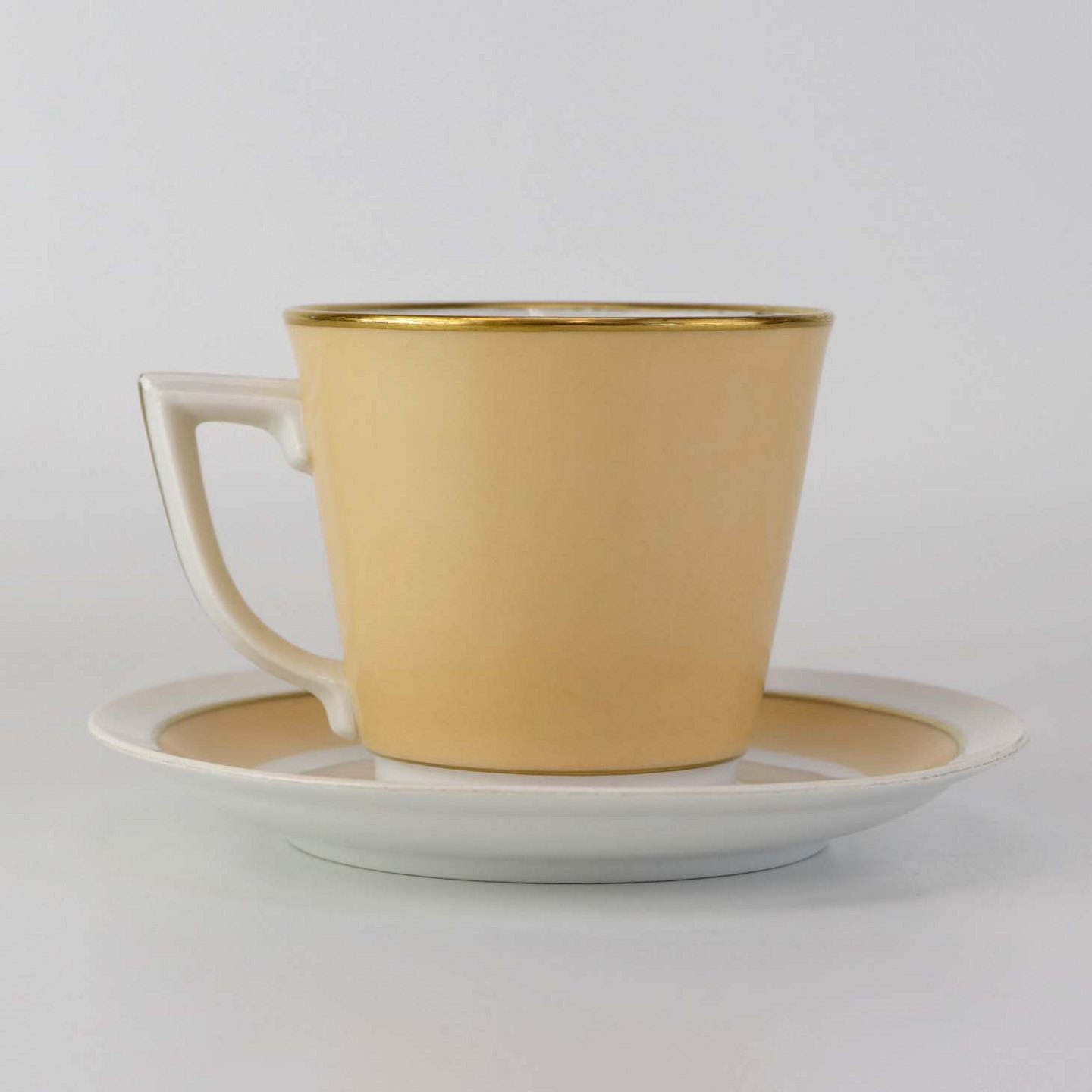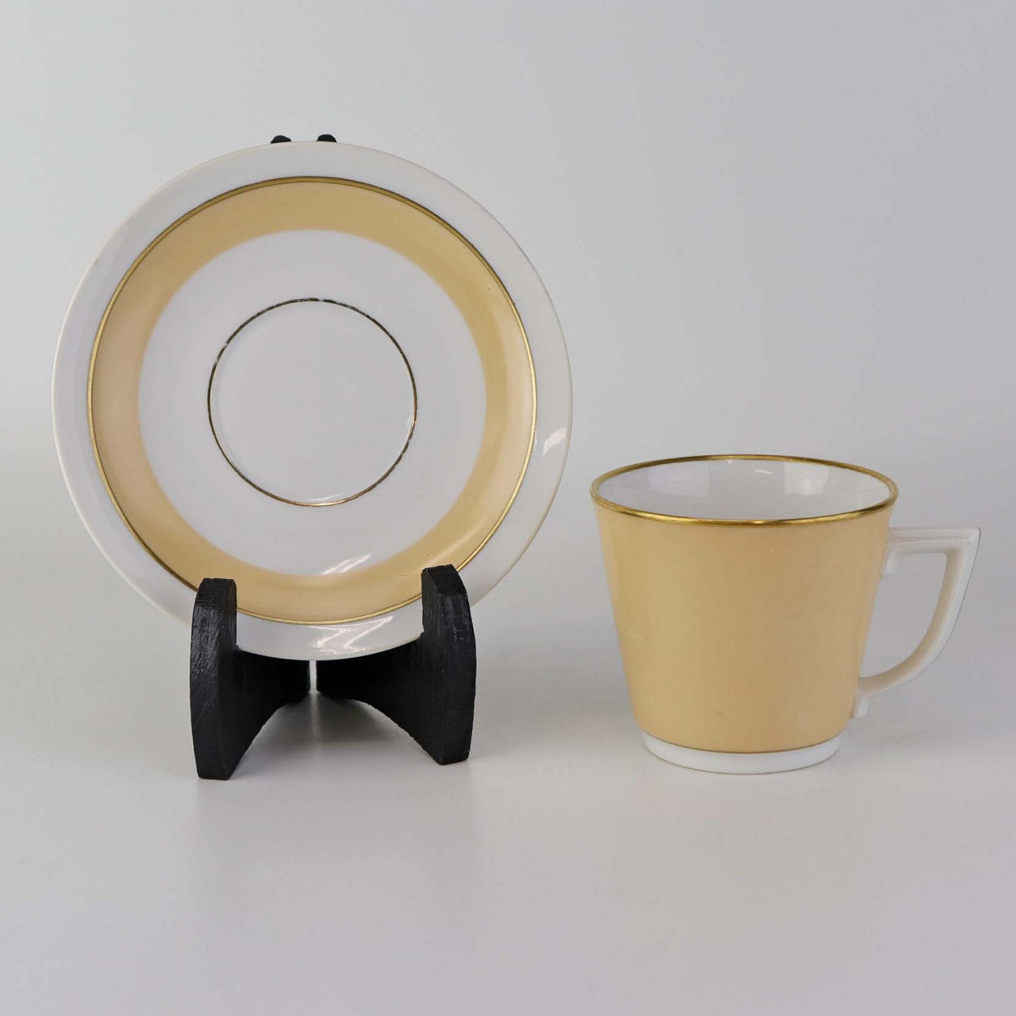 Fremstår med brugsspor på underkoppens dekoration.