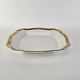 Fremstår med små misfarvninger i guldkanten og et lille hul i kanten på undersiden