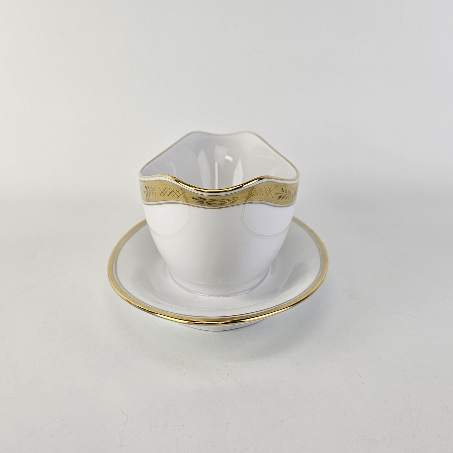 Stel nr. 607 er i hvidt porcelæn og har en guldkant med bladværk