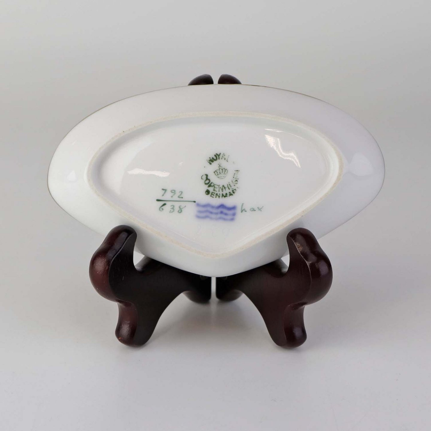 Muslingeformet asiet i kongelig porcelæn fra stellet Jægersborg. Nr. 792/638
