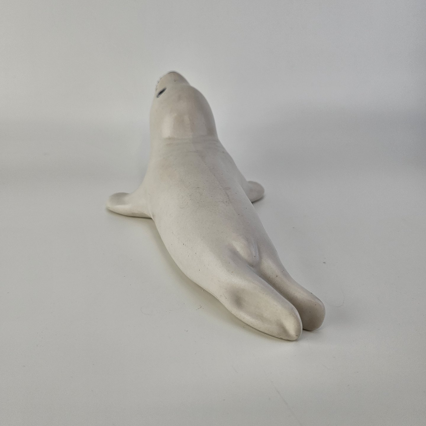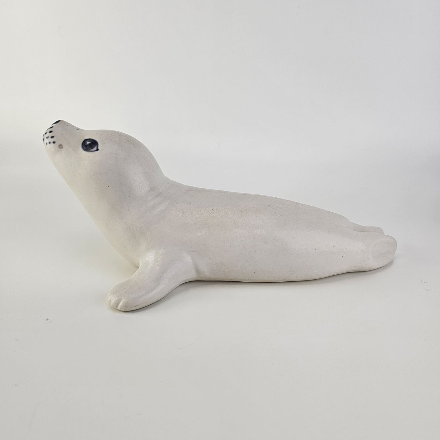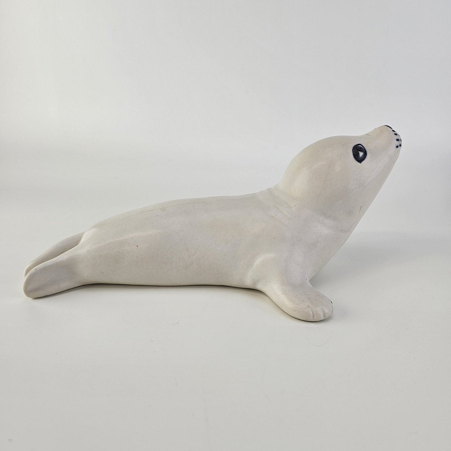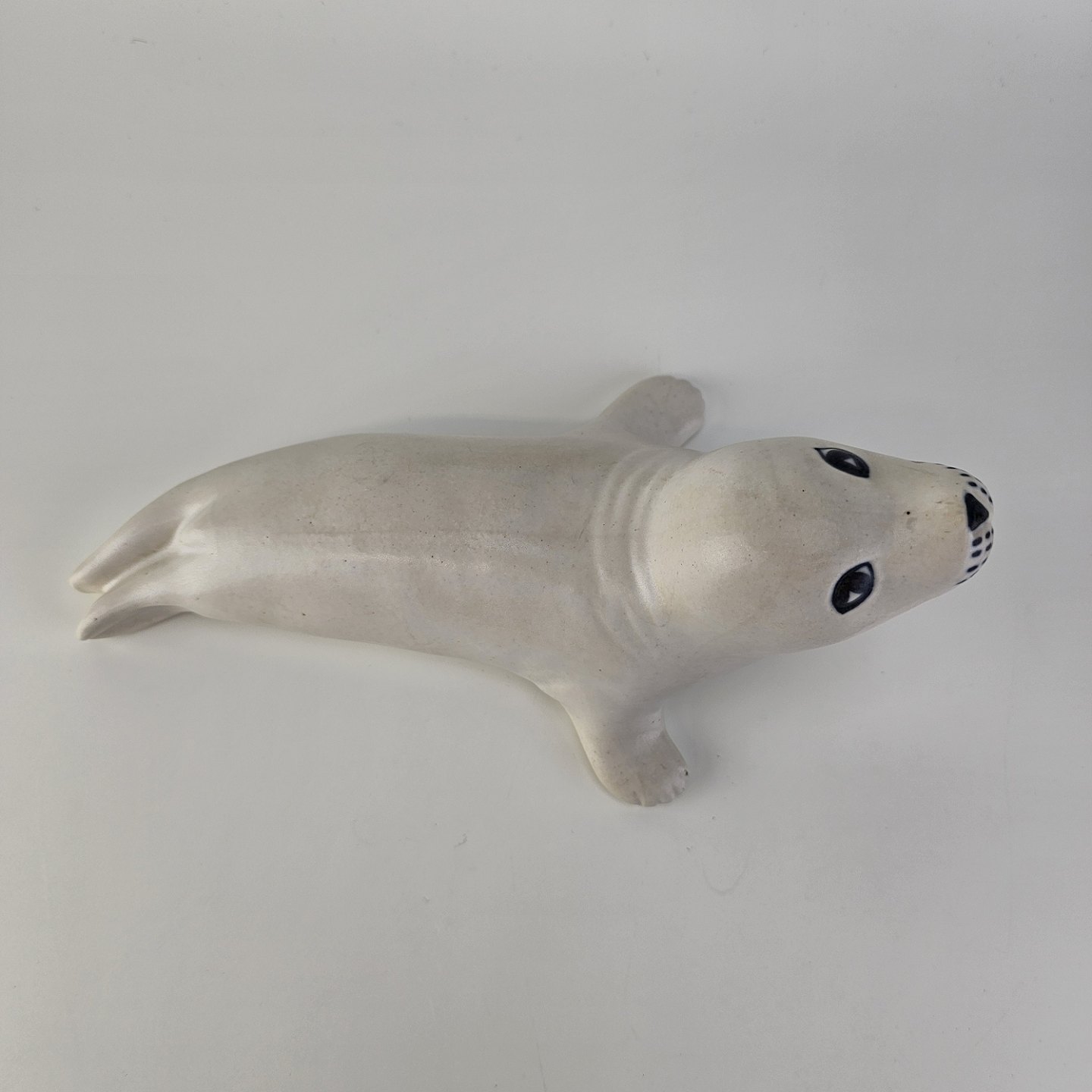 Figur i keramik med motiv af en hvid sæl