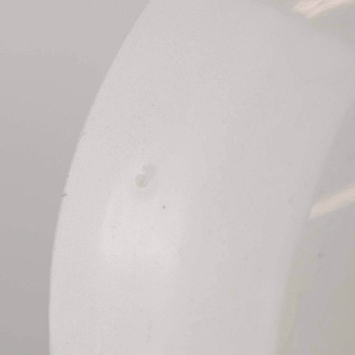 Fremstår med krakkeleringer og mindre ujævnhed i glasuren på bagsiden.