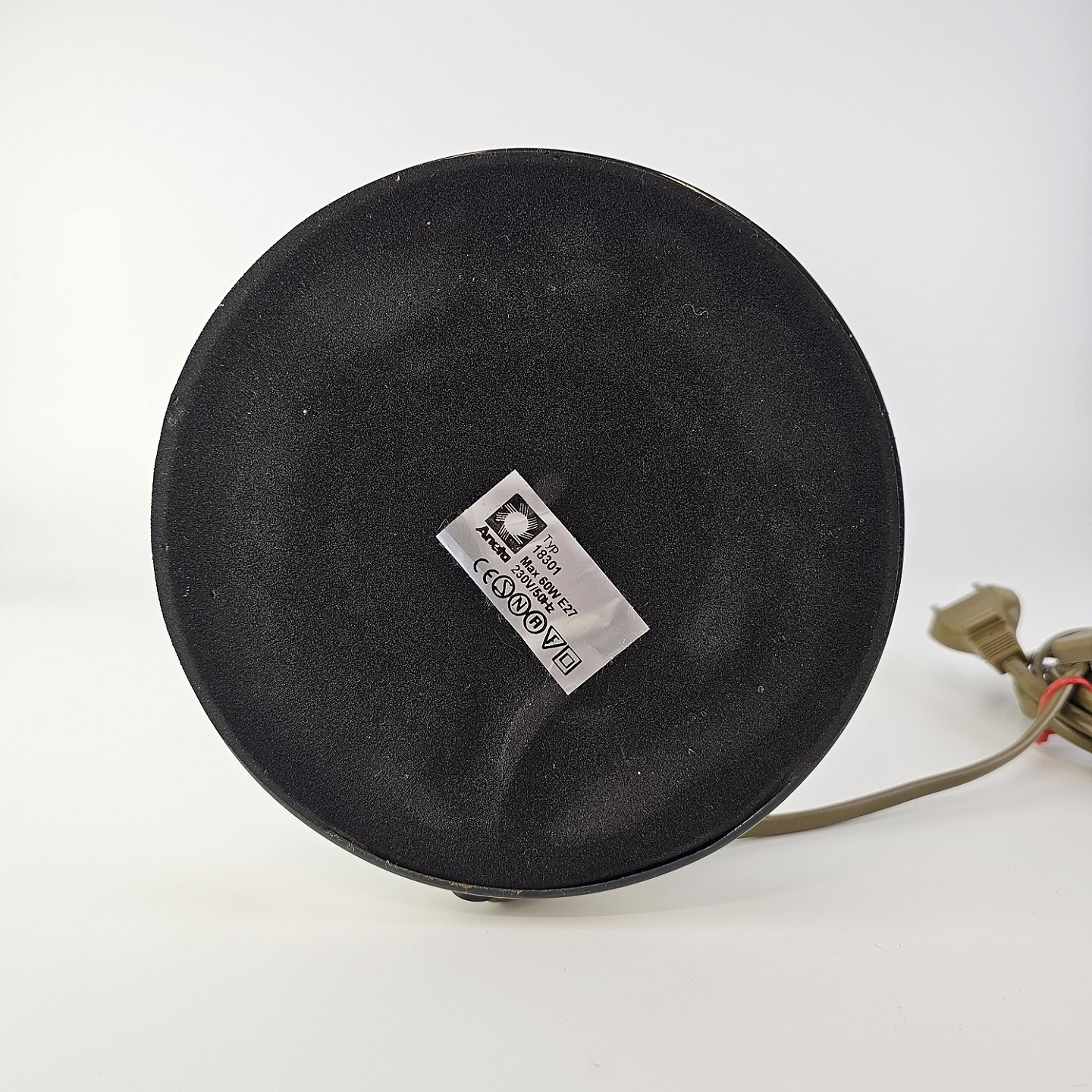 Bordlampe med fod i messing og skærm af grønt/hvid glas
