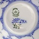 Musselmalet halvblonde er riflet hvidt porcelæn med dekoration af blå ranker og en kant med blonder.