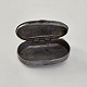 Pilleæske i tin med motiv af en dreng og en hund omgivet af bladmotiver