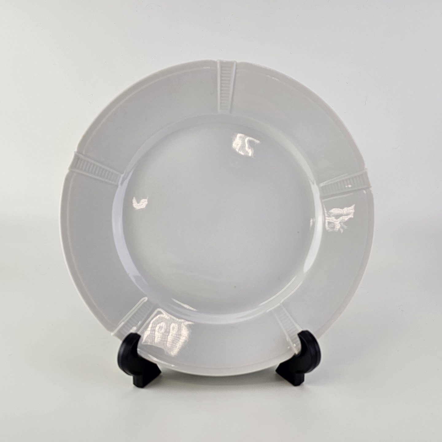 Flad frokosttallerken i hvidt porcelæn fra stellet Rosenborg