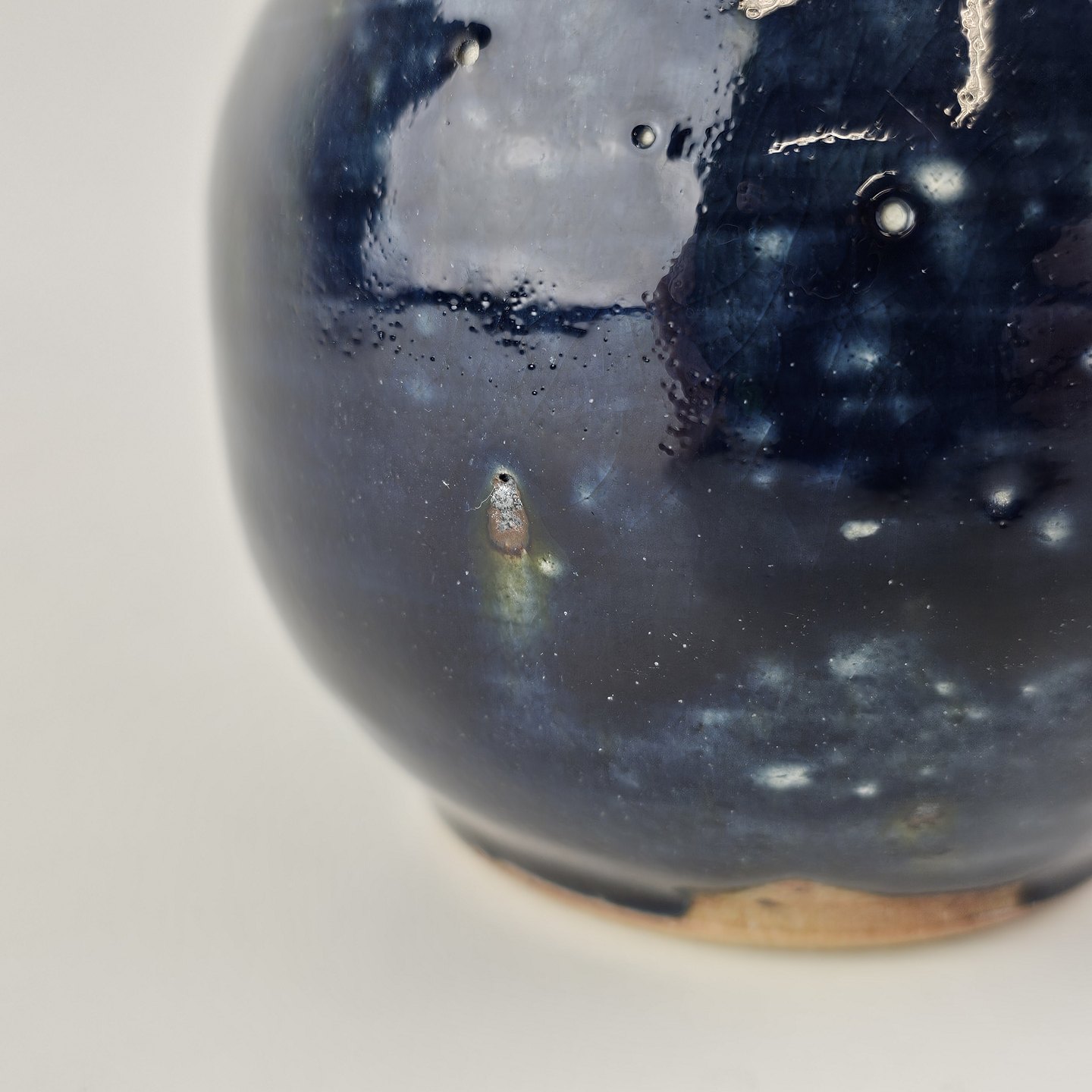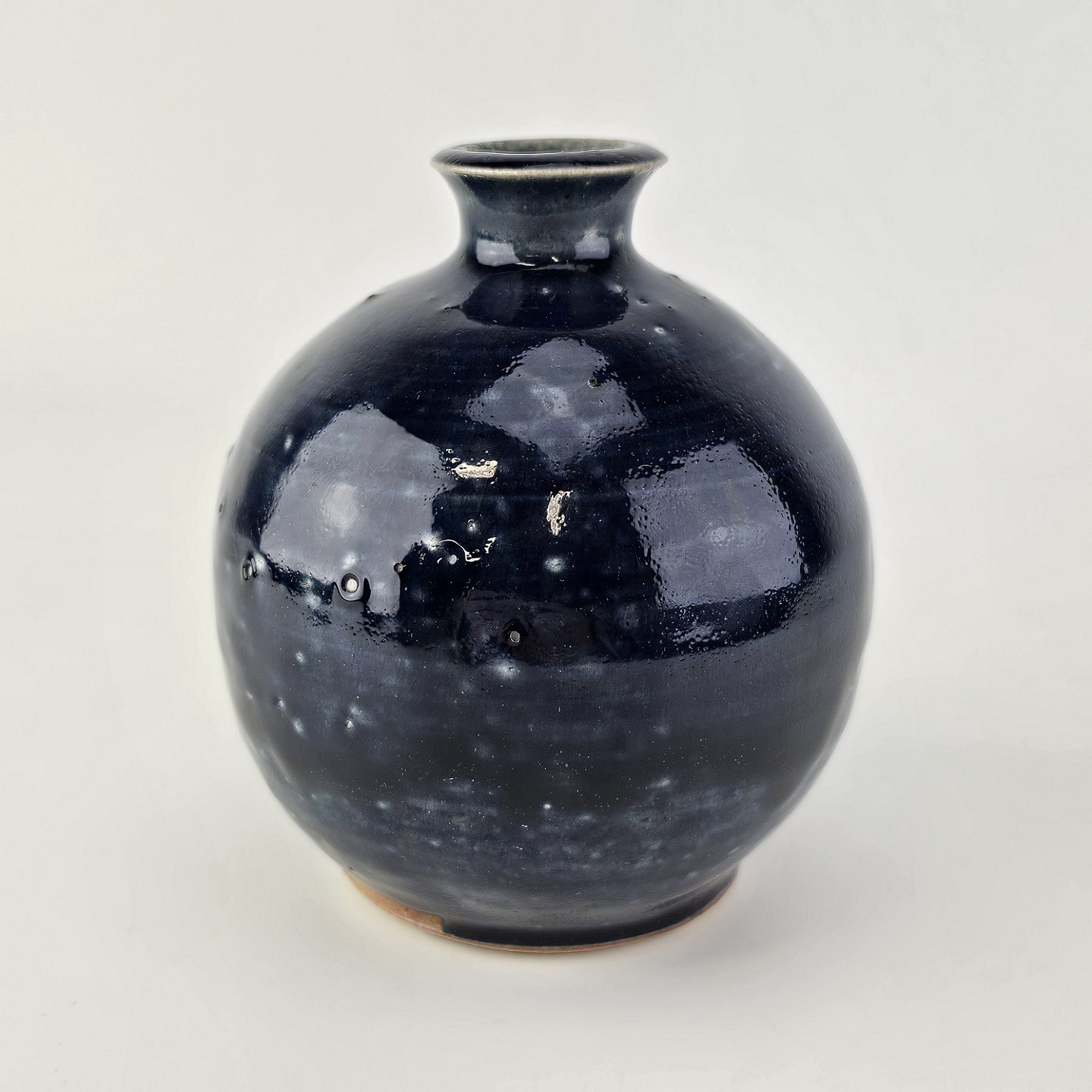 Blålig unika vase i rundlig form med smal hals
