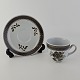 Moccakop med underkop i fajance fra stellet Brun Tranquebar fra år 1919