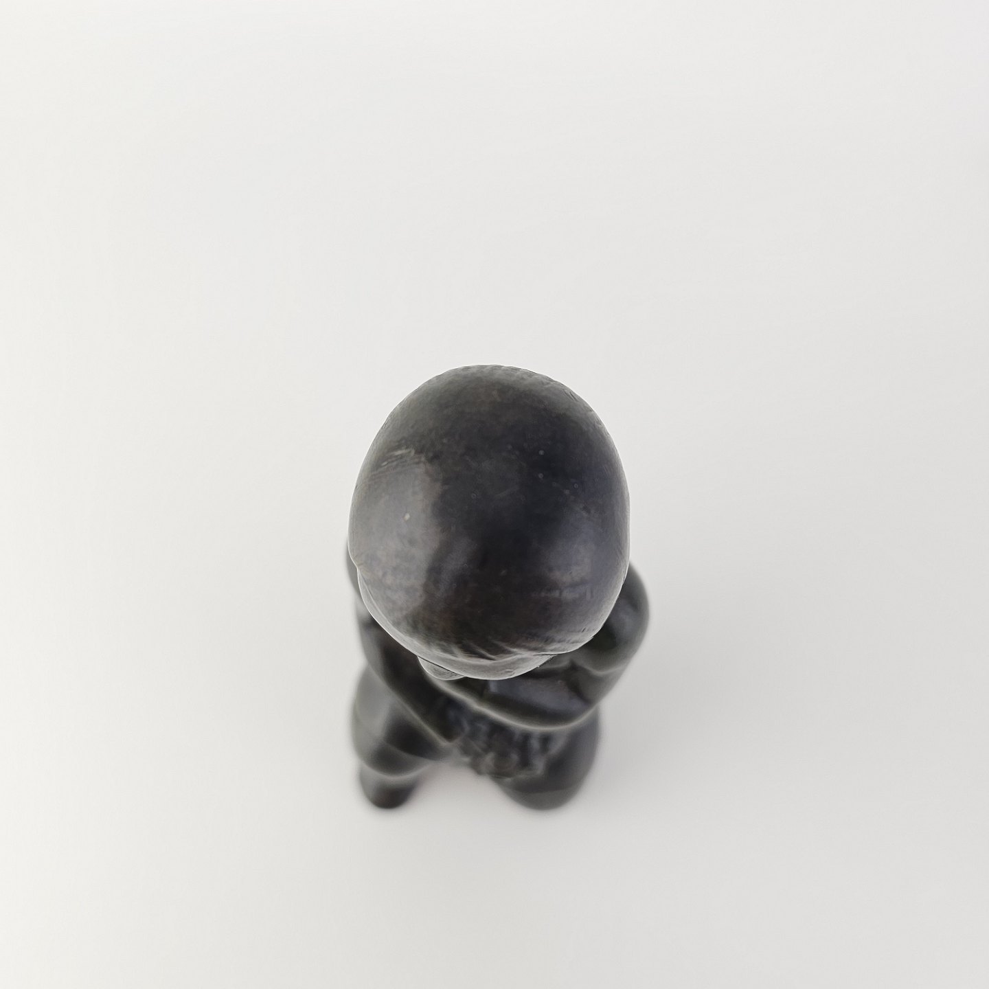 Grønlandsk figur med motiv af en knælende person med blomster Diskometal