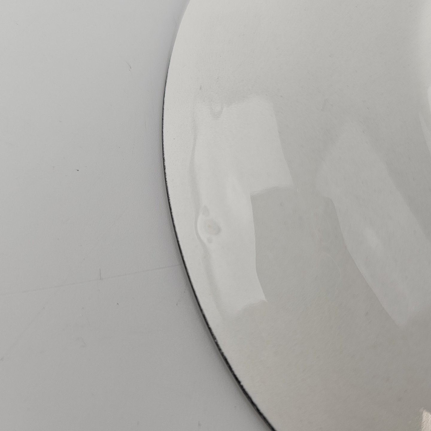 Håndmalet kop med underkop i fajance fra stellet Zebra med mønster i sorte og hvide striber.