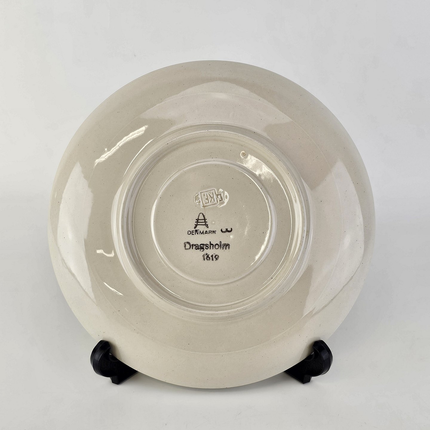 Bouillonkop med underkop i fajance fra stellet Dragsholm fremstillet i perioden 1934-1965.