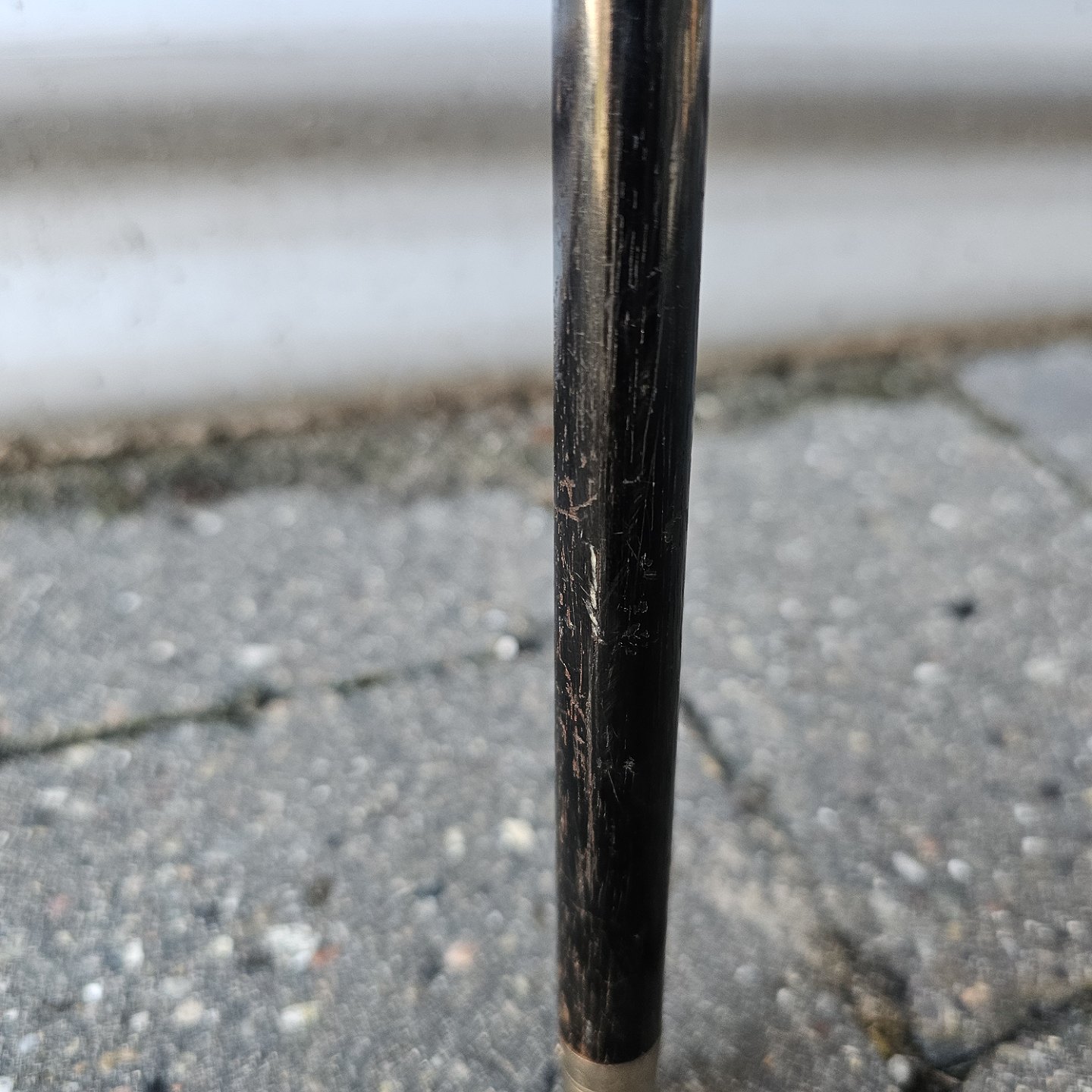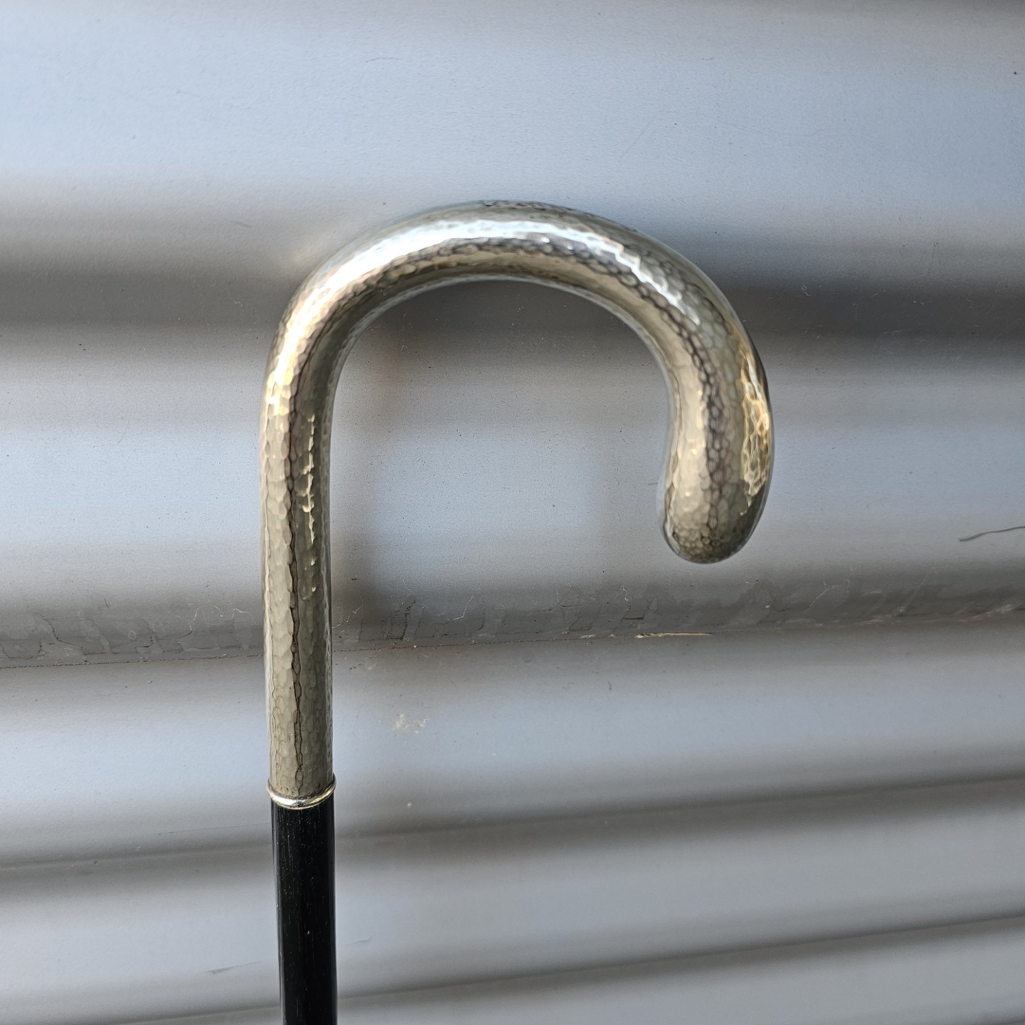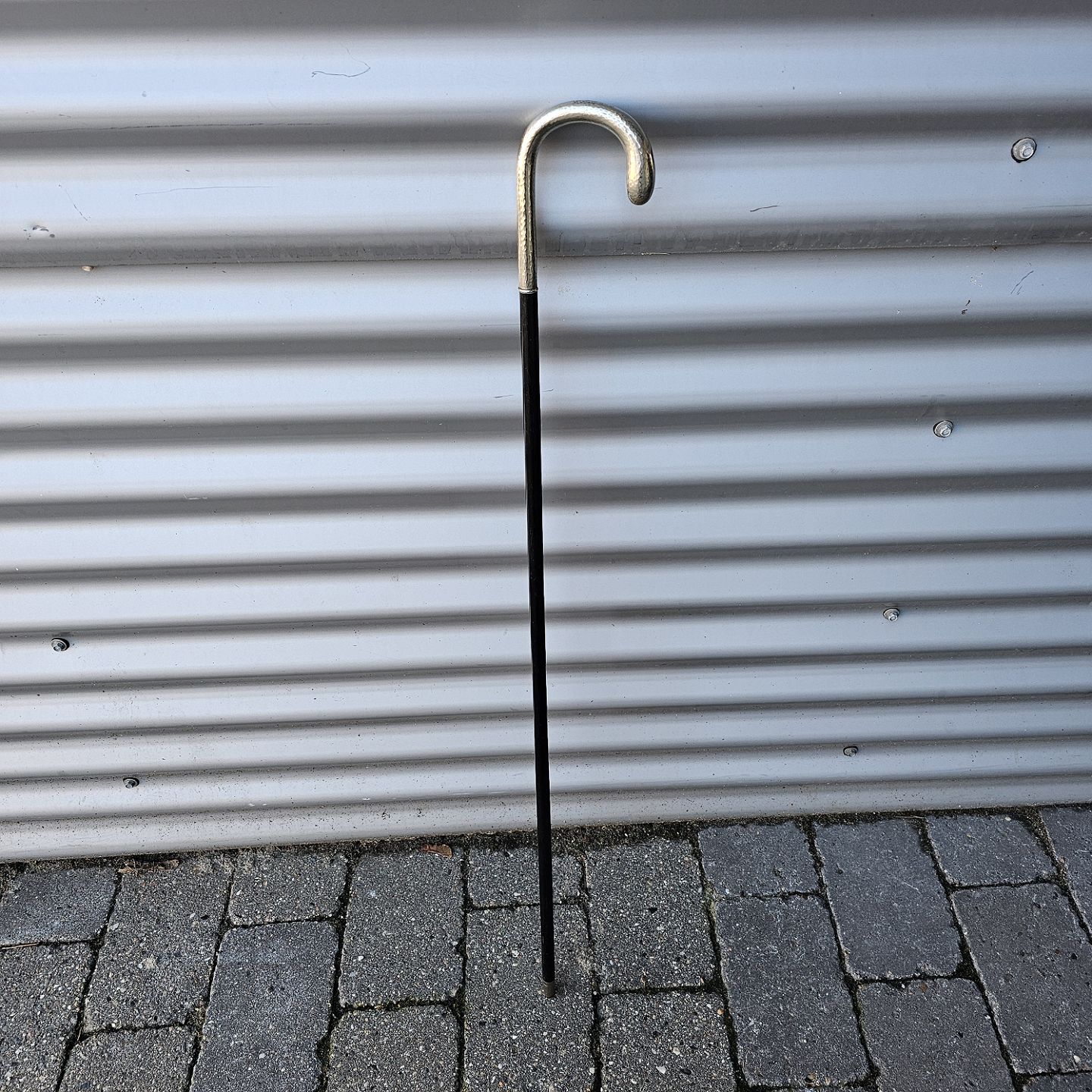 Stok i lakeret træ med buet håndtag