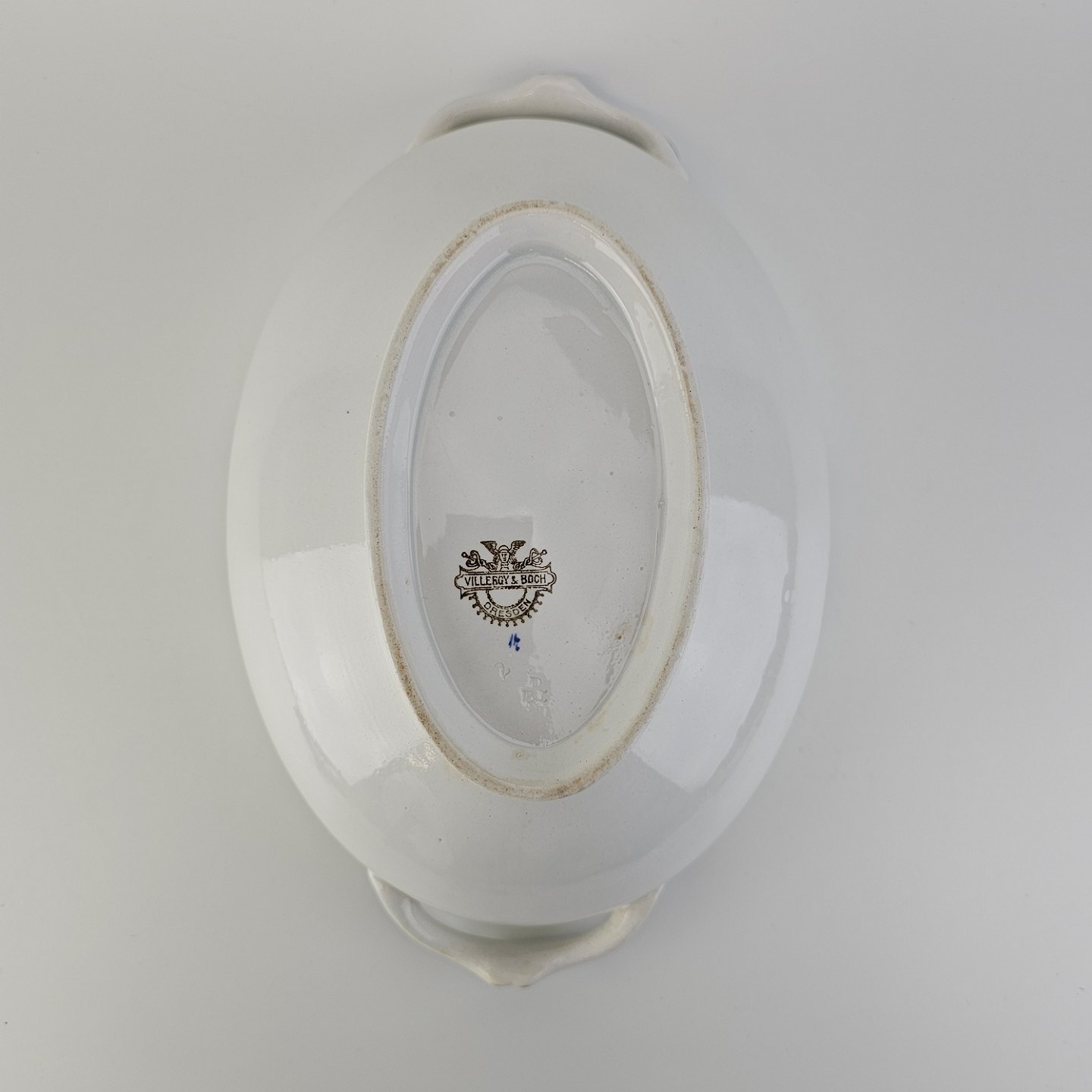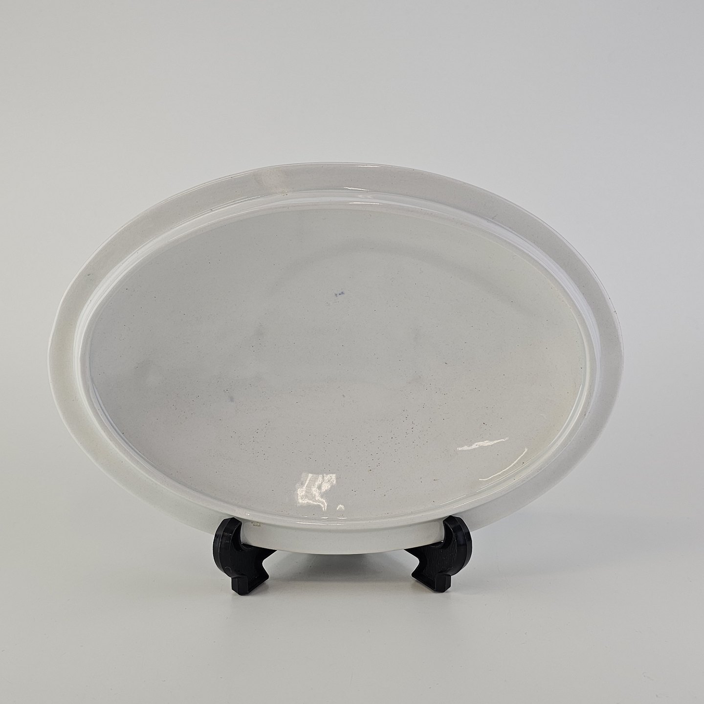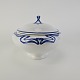 Blå Olga er hvid fajance dekoreret med blå abstrakt mønster langs kanten