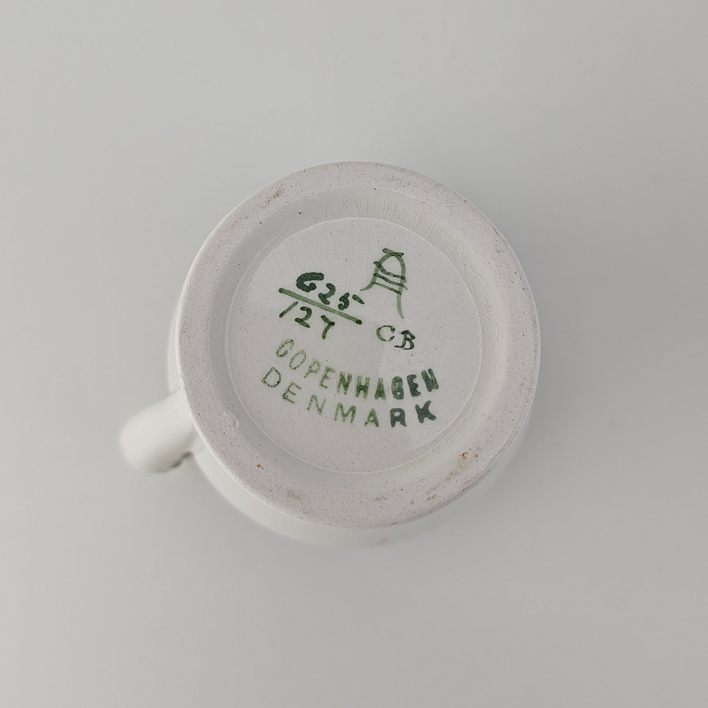 Stellet er i hvid fajance og håndmalet med dekoration af blå violer