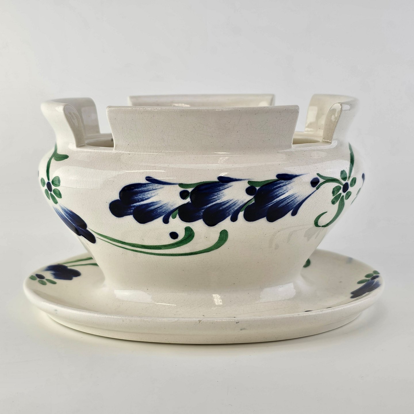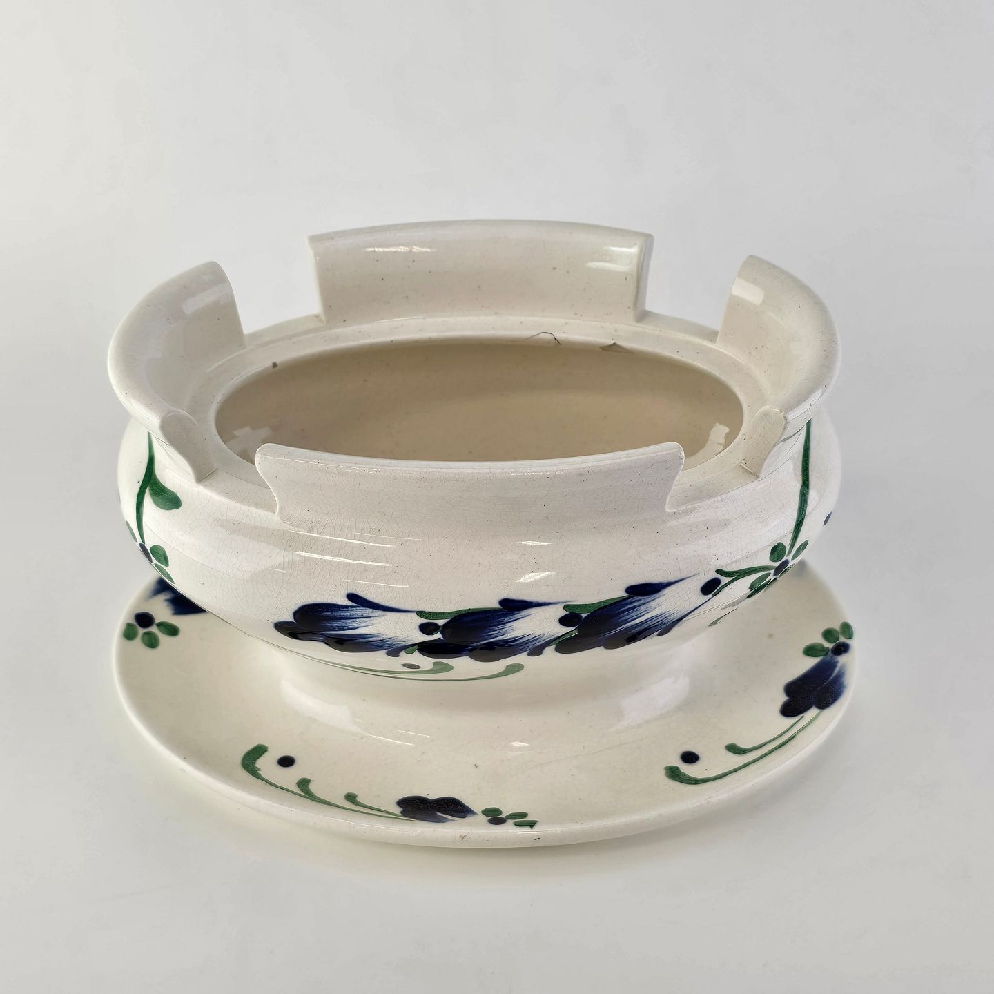 Skål i hvid fajance med blåmalet dekoration blå Cenariaer