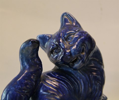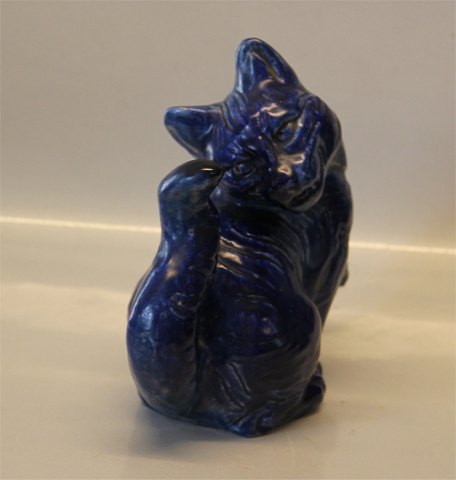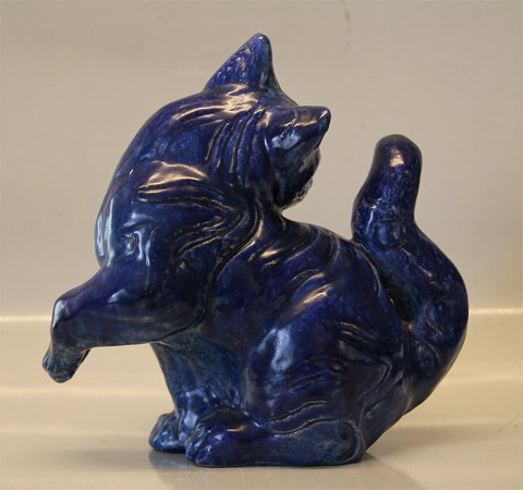 Dansk Stentøj Unika - Kat Blåglaseret 20 x 20 cm Knud Kyhn 1932