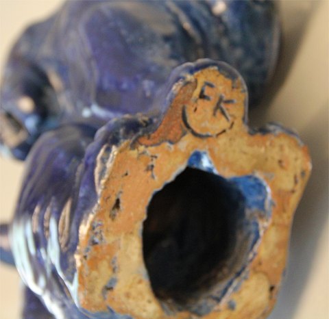Beskrivelse: Stentøj Unika - Kat Blåglaseret 20 x 20 cm Knud Kyhn 1932 Lavet på KKs eget værksted i Farum I fin og hel stand