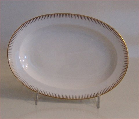 018 Fad 24,5 x 17 cm (318) Luna Bing & Grøndahl B&G : Hvidt porcelæn, med pindemønster guldkant, form 601 Helsingør I fin og hel stand.